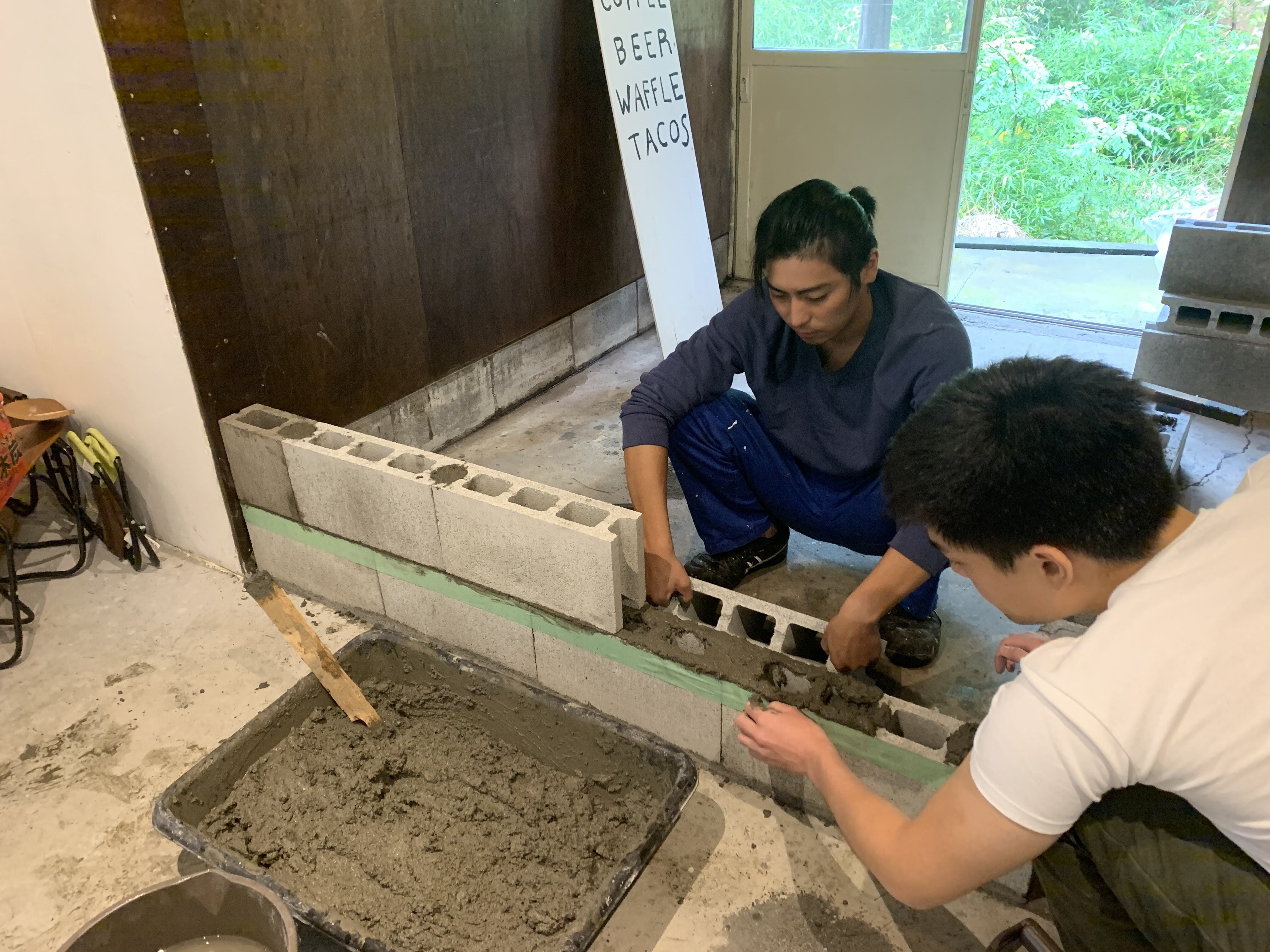 今日の作業は、先日1段目を製作したキッチンカウンターの2段目と3段目を積む作業。