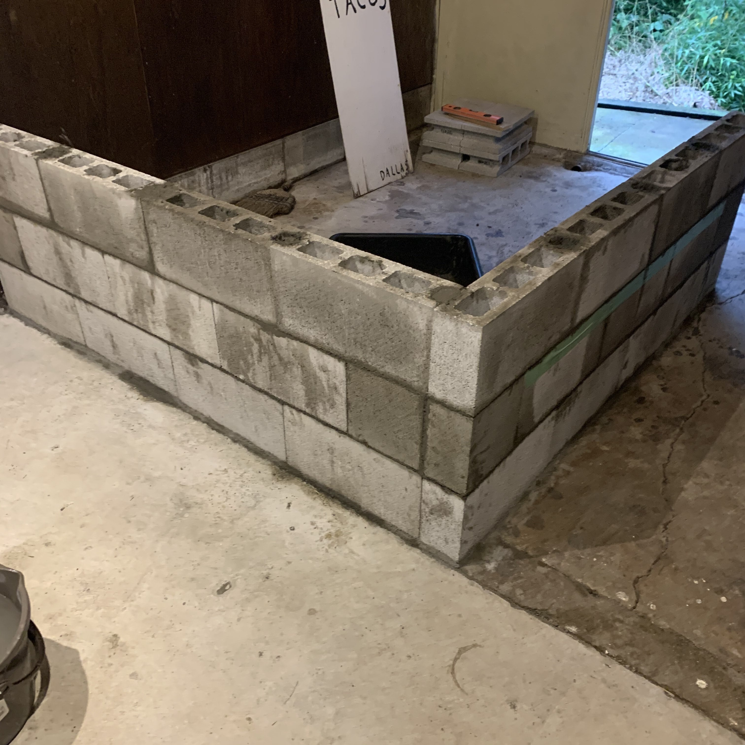 4・5段目の積み上げを行い、天板及び水道への作業の準備を進めます。