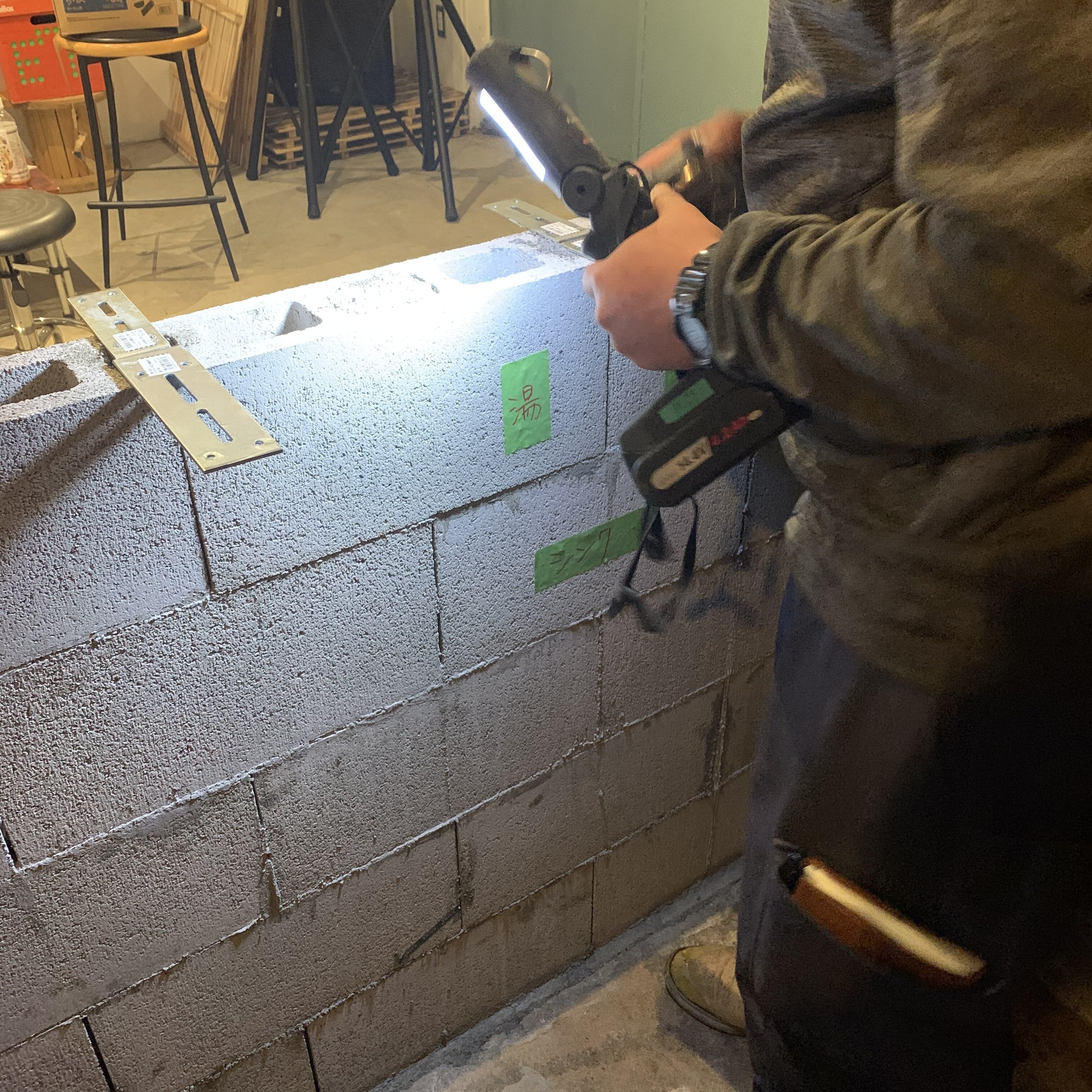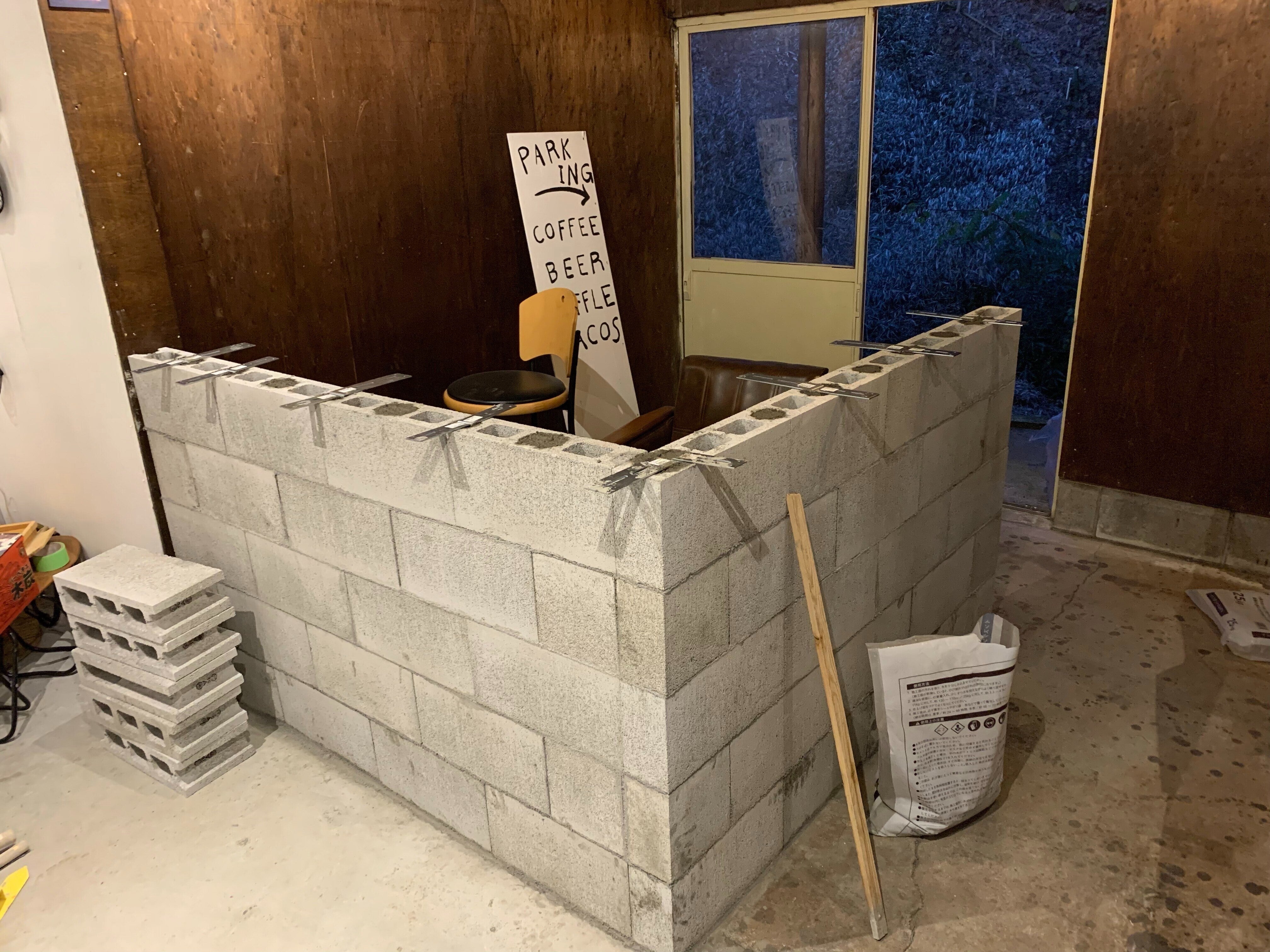 ブロックの土台作りから目に見える形では進んでおりませんが着実にキッチンカウンター完成の日は近づいてます。