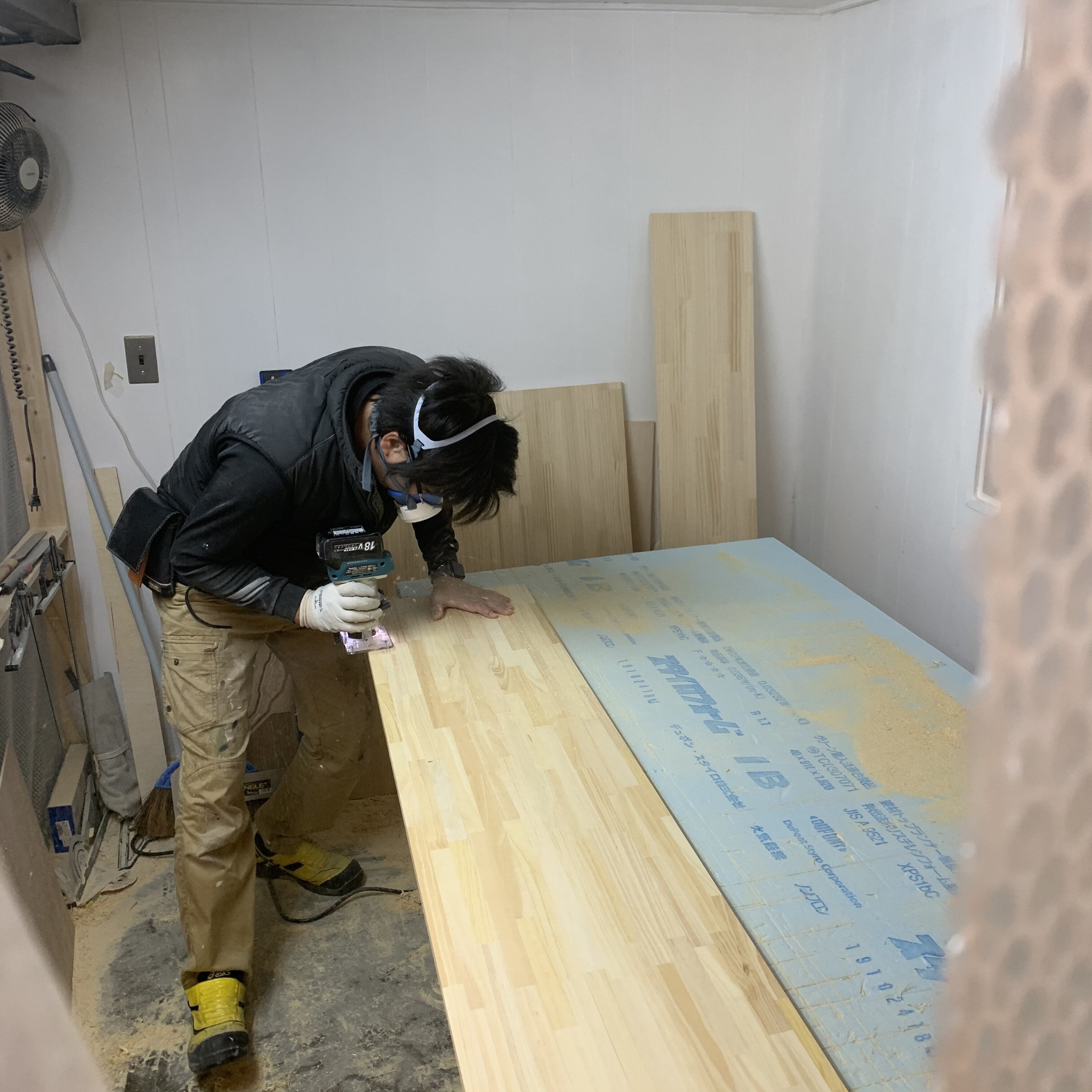 この日はイノが単独で天板受けの金具取付作業。