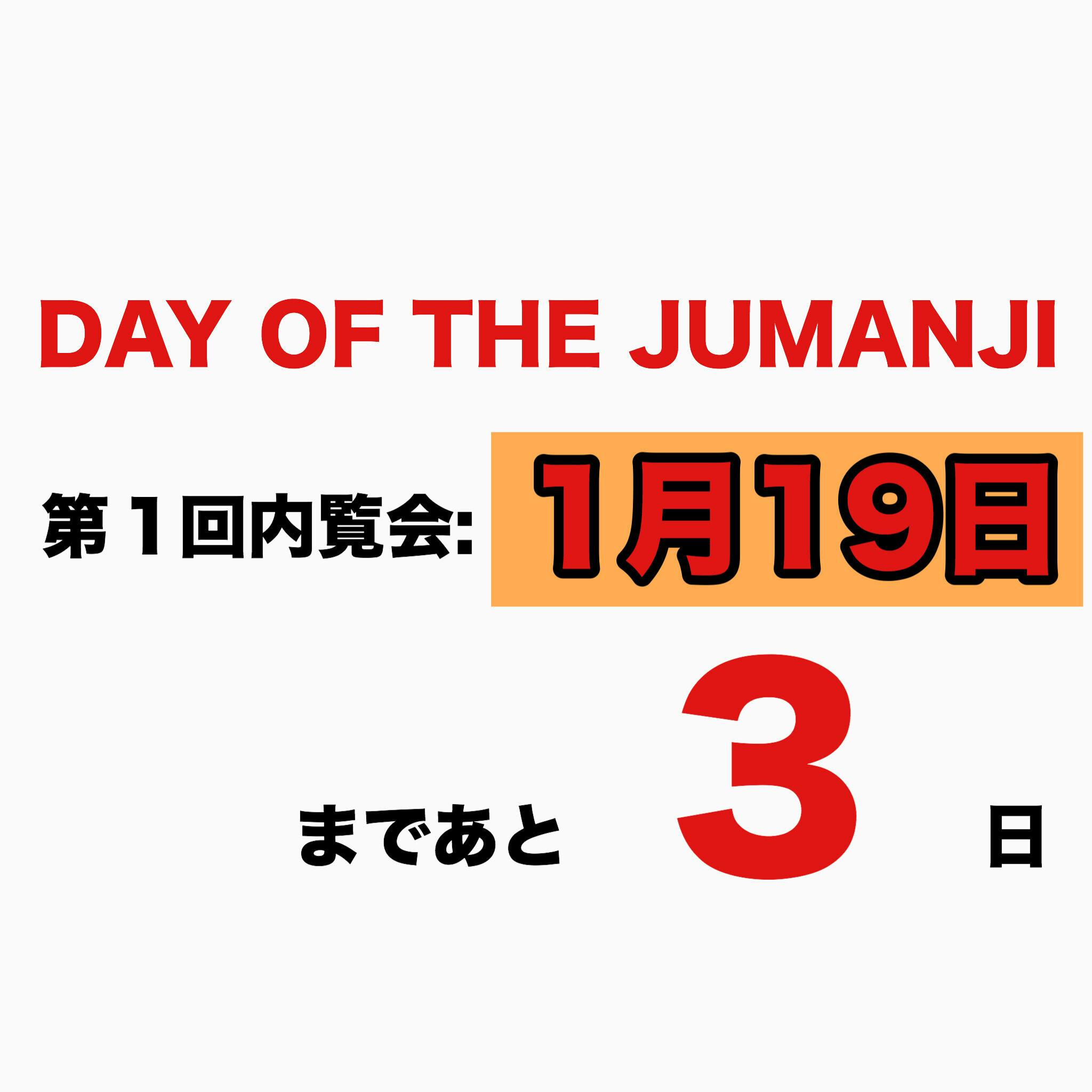 1月19日(日)より始まりますDAY OF THE JUMANJI、記念すべき第1回開催まで今日の日付であと3日を切りました!