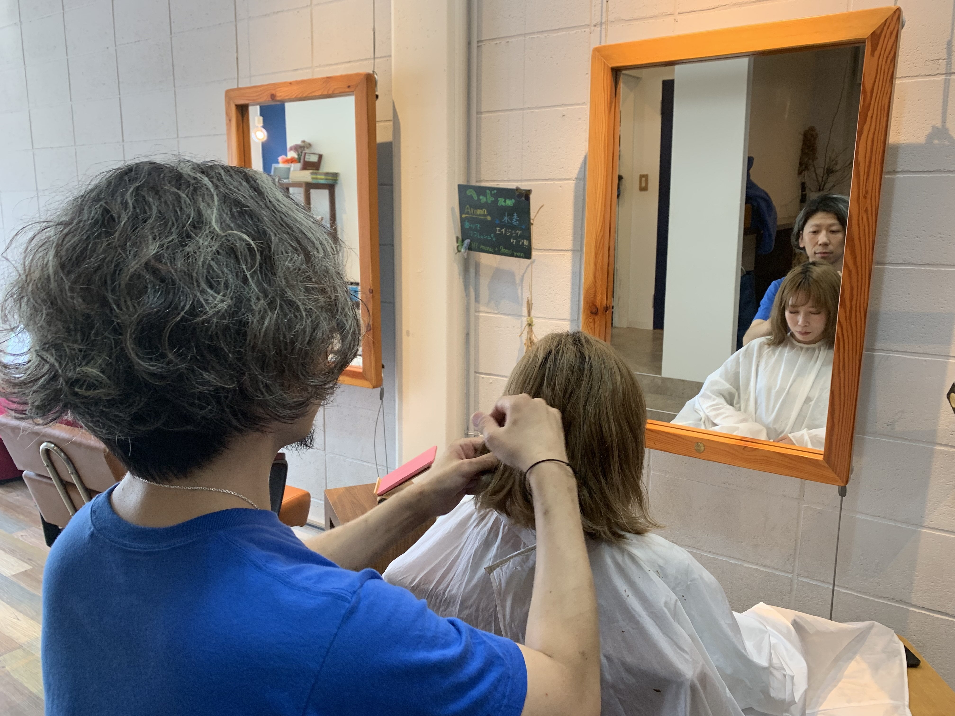 また美容師としても、児童福祉施設への訪問散髪、ヘアードネーション活動、カラー・ブリーチ研究のために都内の同業者講習会に参加したり、と多岐にわたるチャレンジをしています。