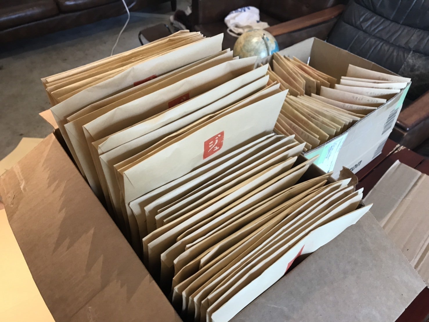 ※発送直前のリターン品の入った封筒たち
