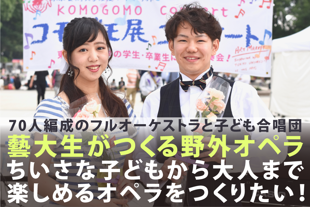今回のプロジェクト「コモゴモ展オペラ」は、「子どもから大人まで、芸術をもっと楽しく身近なものに!」をテーマに、東京藝術大学の卒業生と学生に加え、主に台東区内の小学生への公募で集まった合唱団と共に送ります。