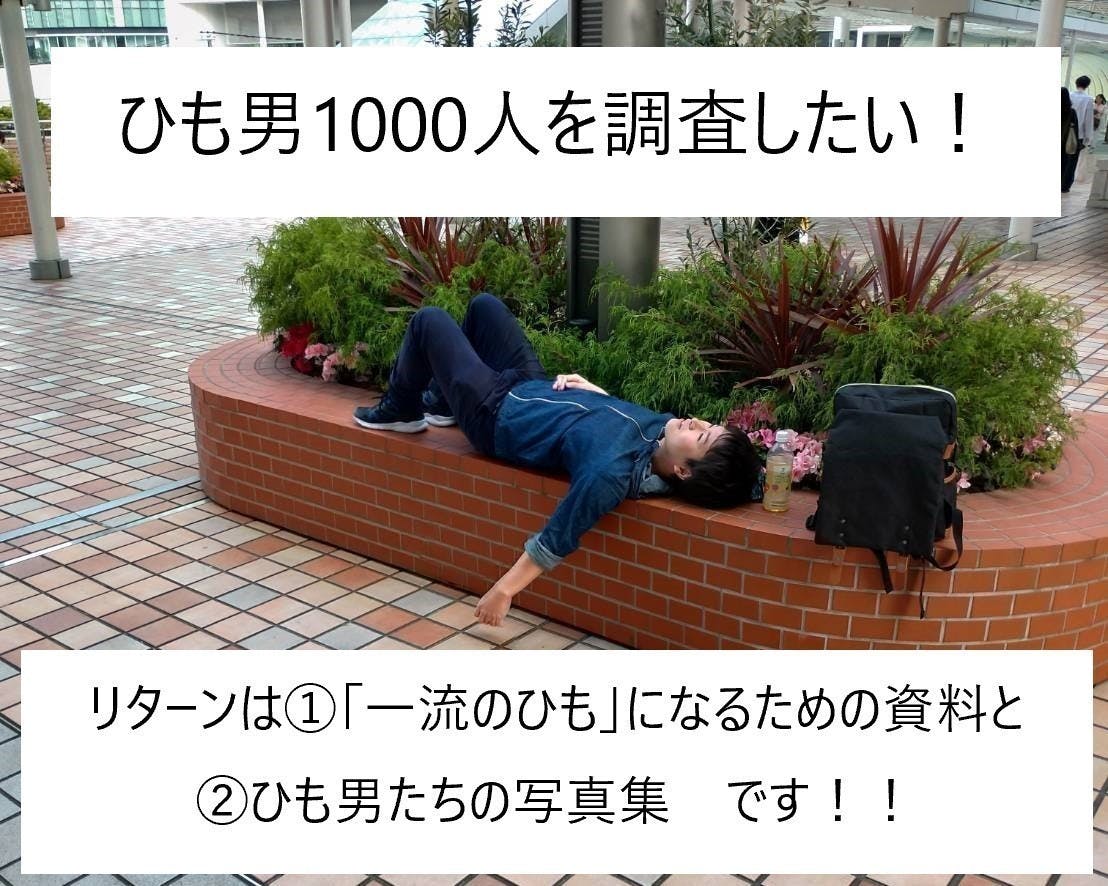 (もし、東京・神奈川で1000人のヒモ男を見つけることができなかった場合は、調査地域を随時拡大して、調査していきます。それでも1000人調査するのが困難だった場合は、調査できた人数分だけを最終データとします。)