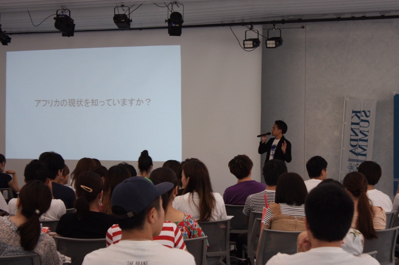 上の写真はチャリティーイベントでシエラレオネについてのプチ講演をしている代表の秋内です