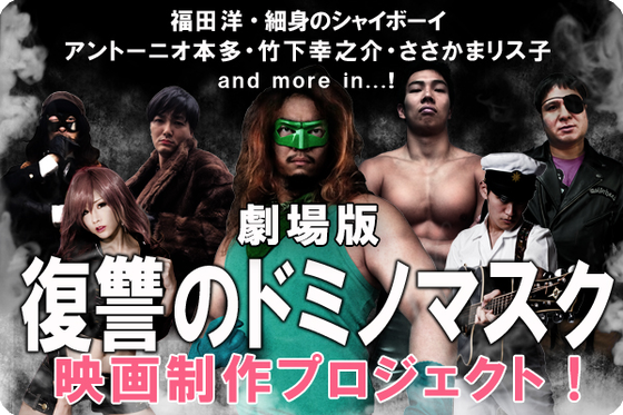 様々なプロレスラーやミュージシャン、アイドルが出演するアクション人情活劇「劇場版・復讐のドミノマスク」映画制作プロジェクトです。