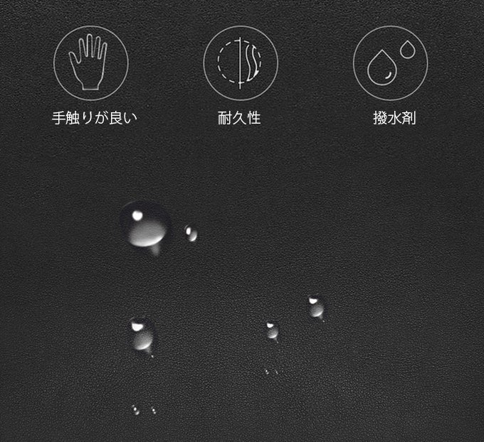 本革ではなく、高品質のPU革を使用することで、伸縮性、撥水性および耐久性を備えた、やわらかく手触りの良い表面に仕上がっています。