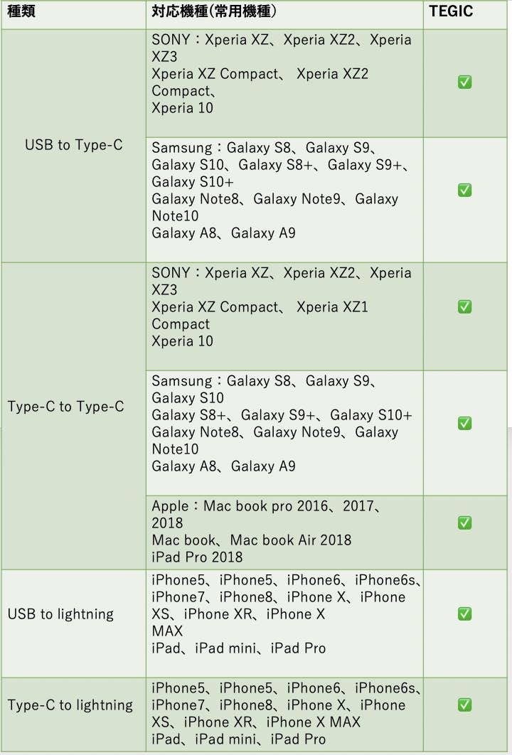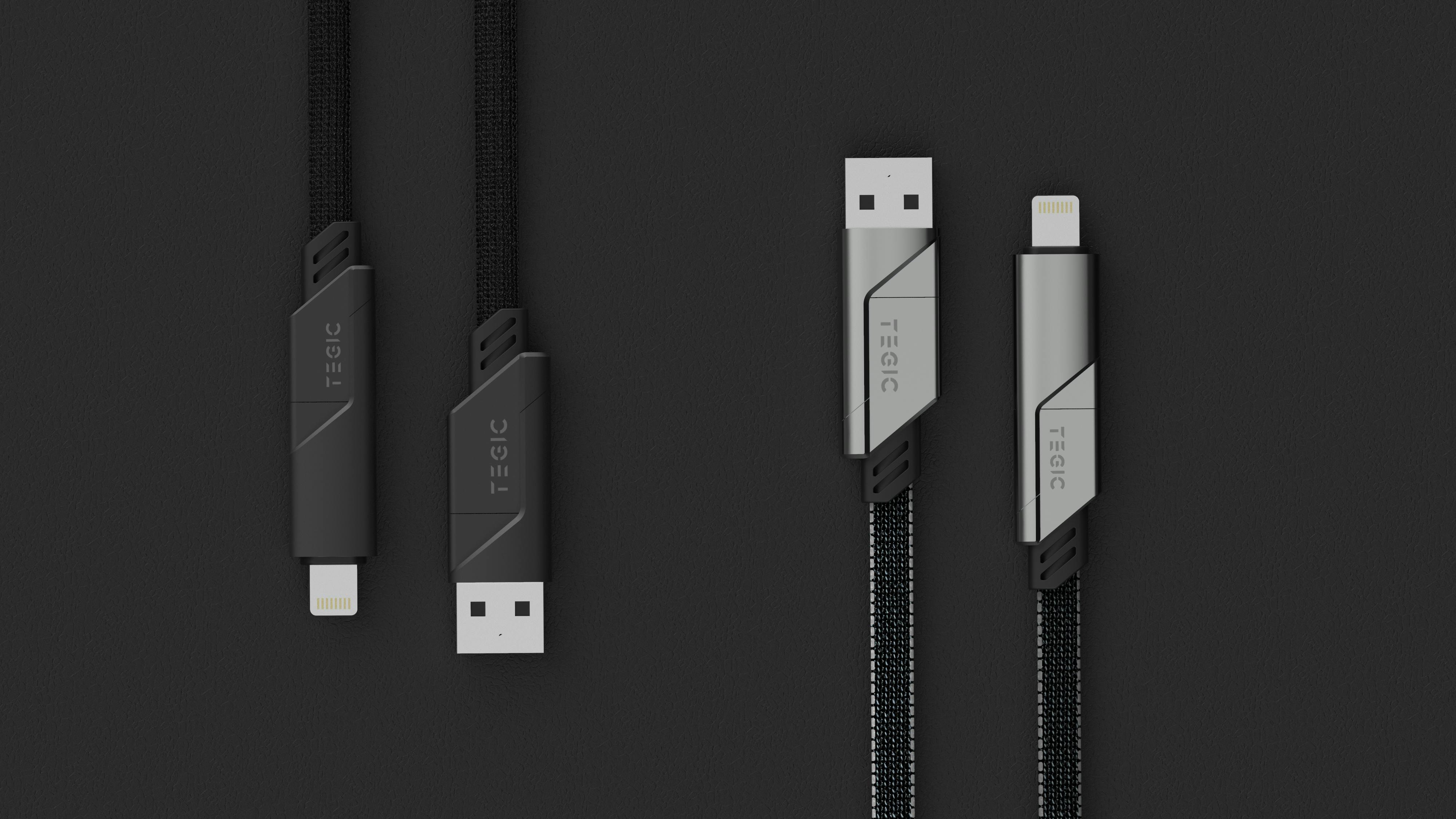 TEGICは、さまざまな最新電子機器に対応した超多用途『4in1充電ケーブル』 です。Type-C to Lightning、USB to Type-C、USB to Lightning、Type-C to Type-Cまでをサポートします。