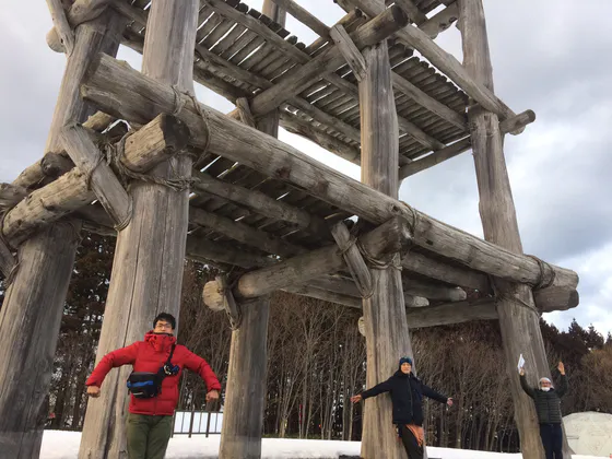 話は変わりますが、我々劇団の活動以外に、旧石器人パフォーマンスや縄文人パフォーマンスを、出土遺跡が元となっているミュージアム施設と組んでパフォーマンスを行うことが多いので、「せっかく青森まで来たのできちんと勉強していこう」と近くの山内丸山遺跡まで行ってきました。