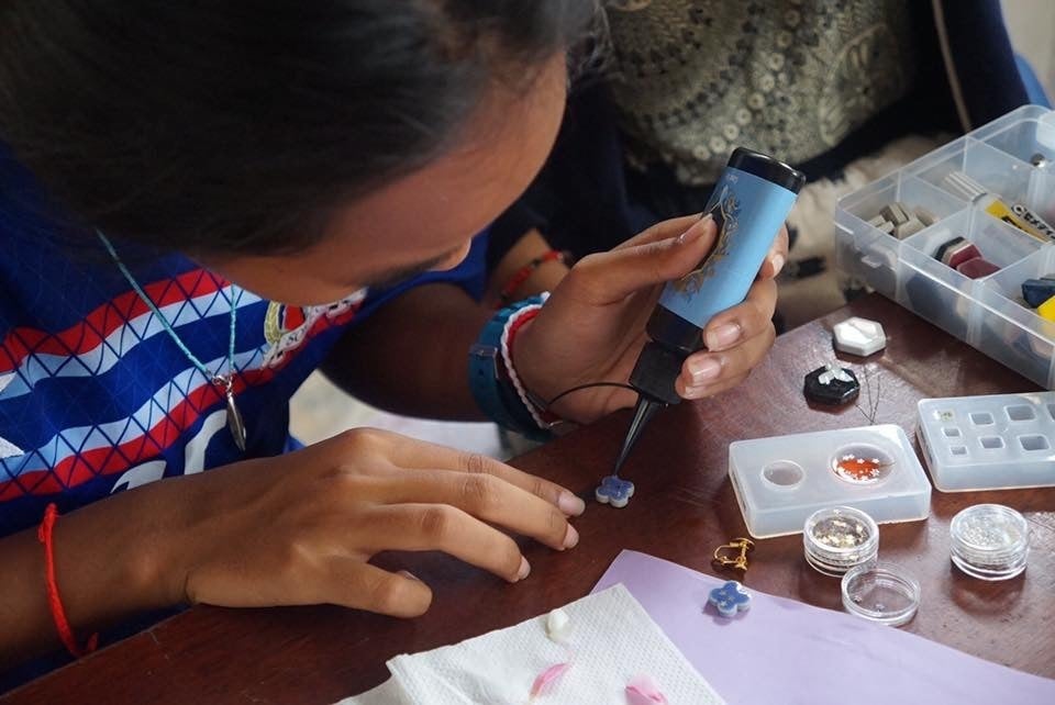 日本の美濃焼タイルでアクセサリーの作り方をカンボジアの孤児院の子供たちに伝え、楽しむだけではなく技術を伝え新しい形のお金を作り出す。