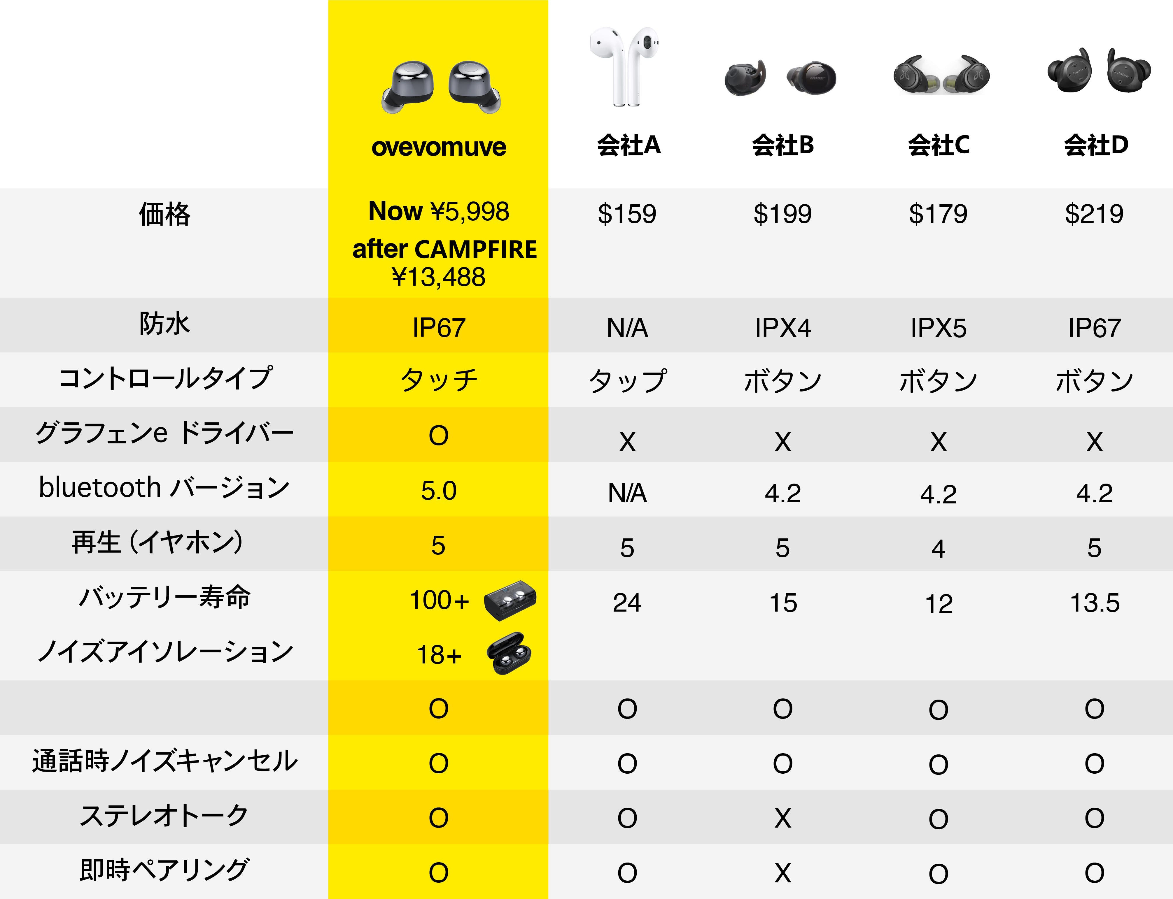 アップルやサムソン、ソニー等と比べても、ovevo デュアルワイヤレスBluetoothヘッドセットは最高の製品の一つである。$100を超える競合製品の小売価格と比べて、ovevoは半額以下で同様のパフォーマンスを提供し、間違いなく検討に値する製品である。