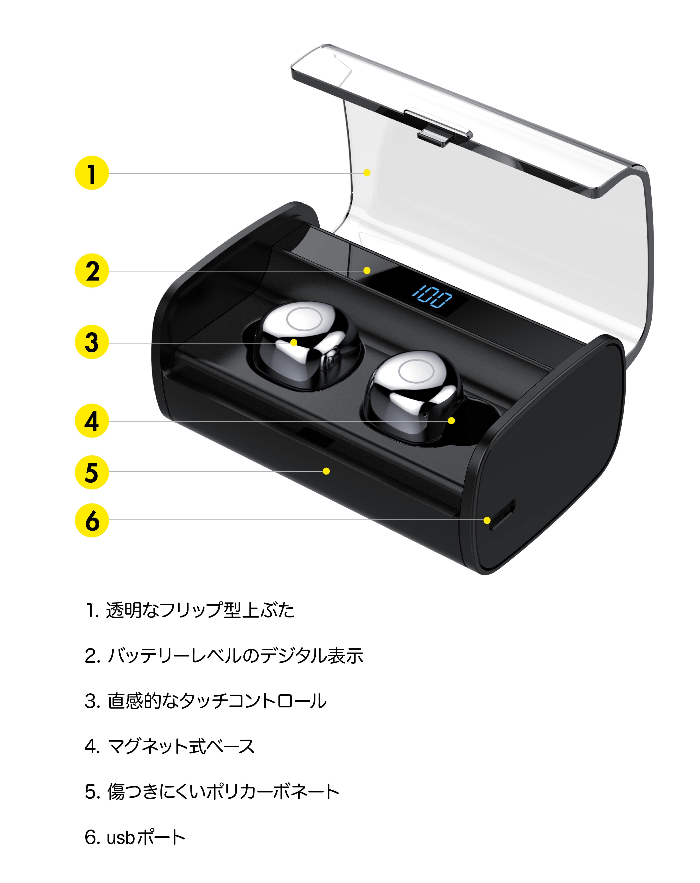 強力なマグネットのベースで、イヤホンの紛失を防ぎます。イヤホンが取り出しやすいよう設計されています。