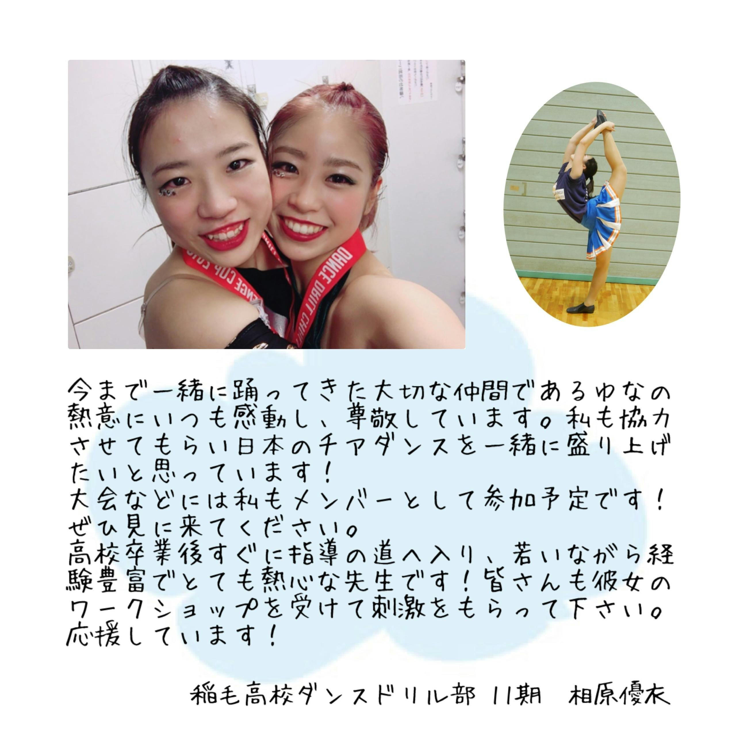 私は5歳の時に新体操を始め、小さい頃から踊ることが大好きでした。高校で初めてチアダンスに出会い入部したことがチアダンスを始めたきっかけです。30名以上の部員でなかなか意見もまとまらず対立する事もありましたが、全国大会で3位以内に入るという目標を掲げチーム一丸となって努力をした事で結果的は4位でしたが全体の2チームのみが受賞出来る特別賞を頂きました。部活で学んだことはコミュニケーションの大切さです。部活後には毎回ミーティングを行い意見を交換する事でチームの絆が深まりチームのレベルアップにも繋がりました。ミーティングではチームを良くする為に自分で考えなければなりません。チームの為にという気持ちが特別賞受賞の結果に至ったと思います。