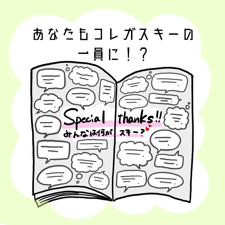 フォトブックには、Special Thanks ページを設けて、支援者の方の自分の好きなものについての「コレガスキーエピソード」とお名前を掲載させていただきます。