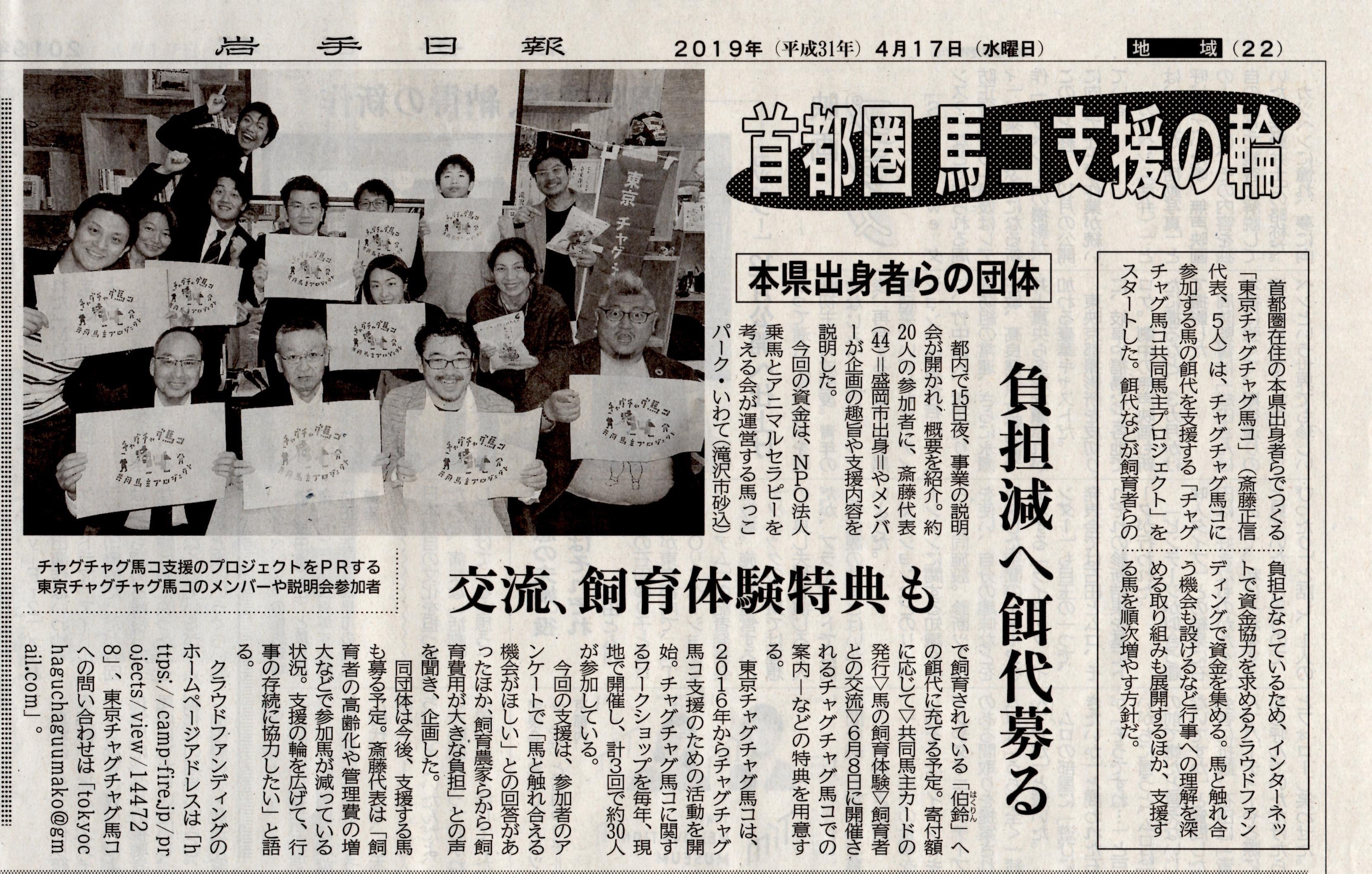 岩手日報2019.04.17記事『首都圏馬コ支援の輪』