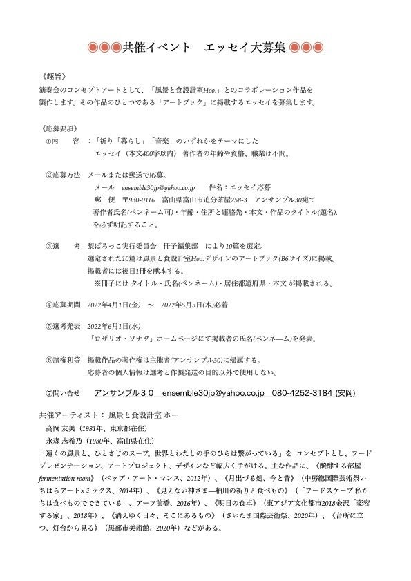 このほかの活動記録もアンサンブル30HPにありますのでご覧いただけると嬉しいです。