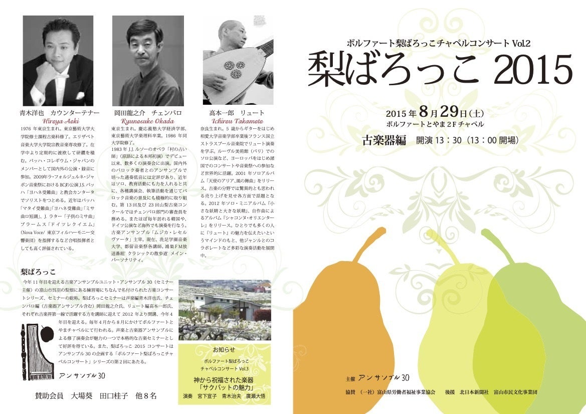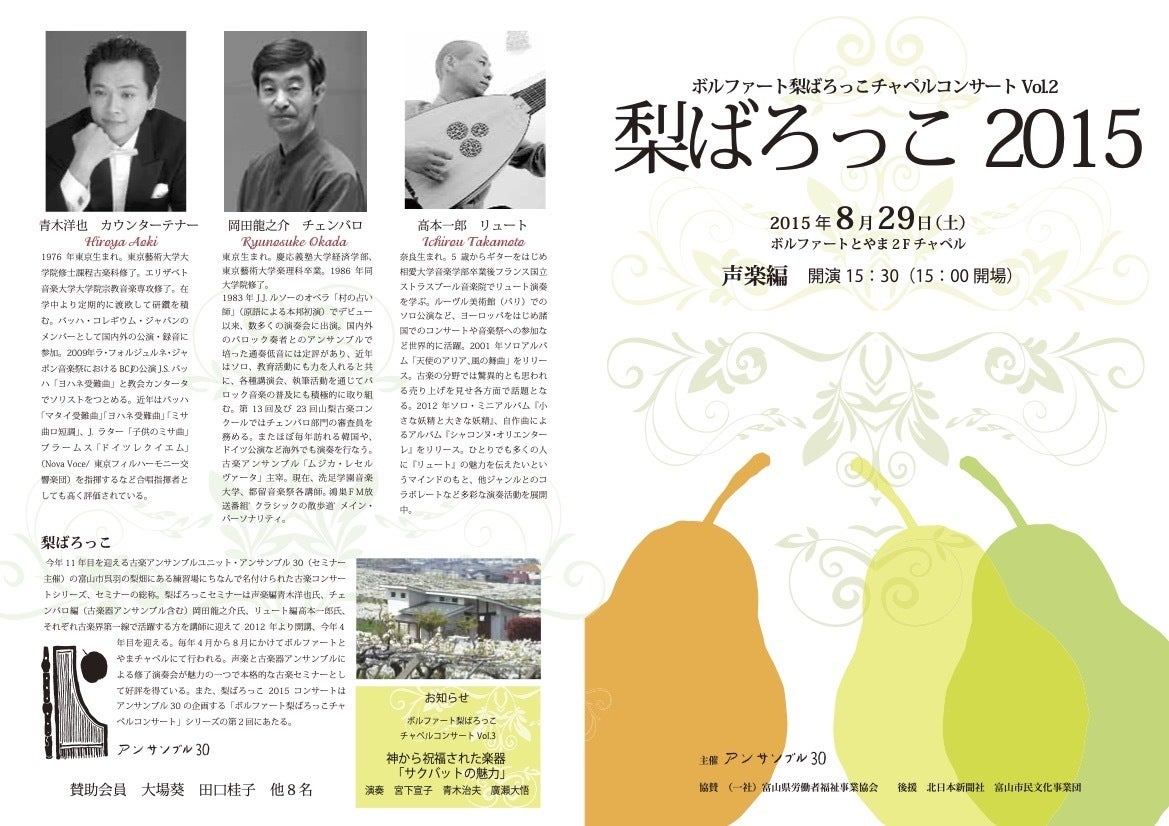 2015年は声楽編と古楽器編に分けて開催