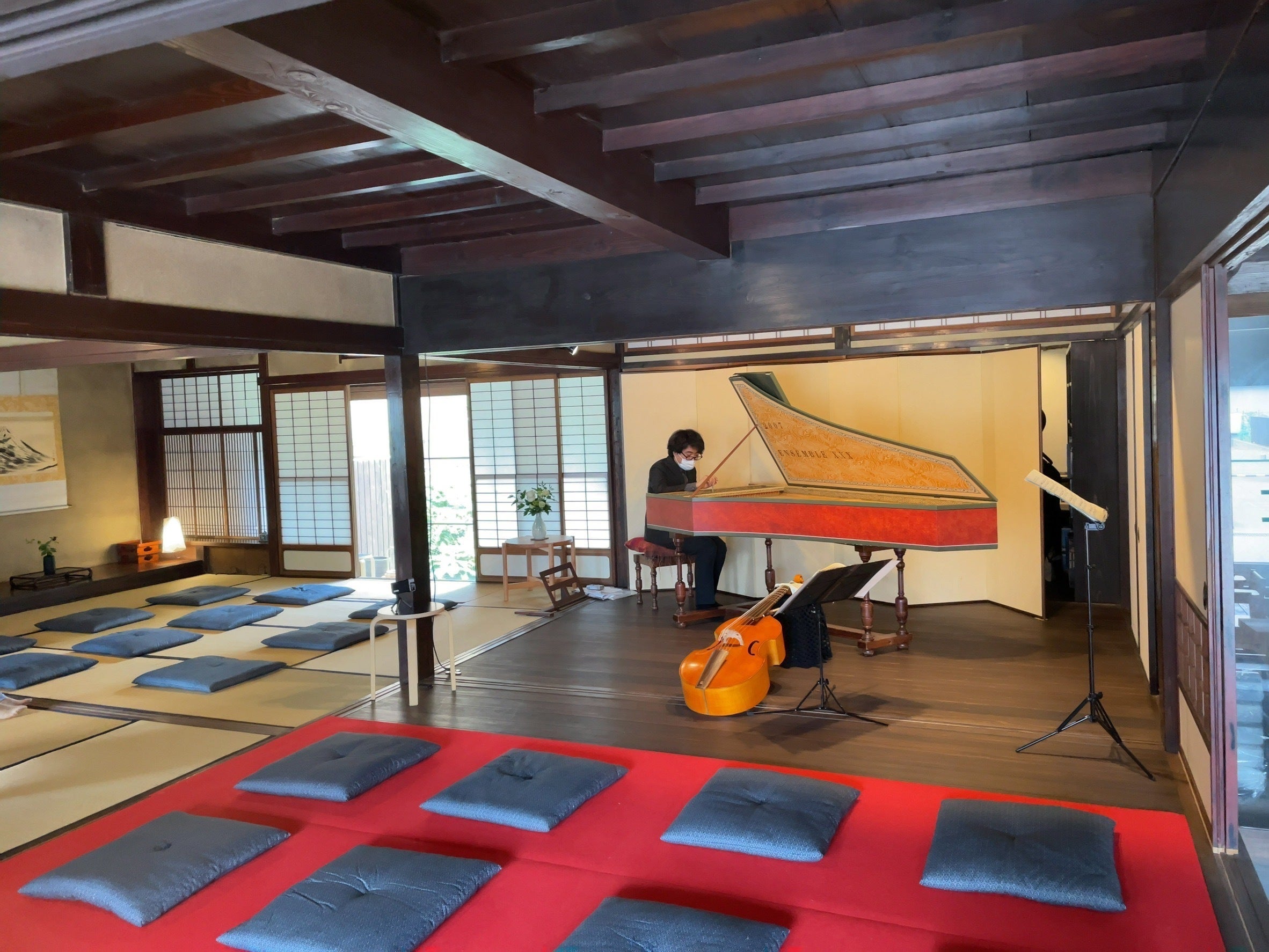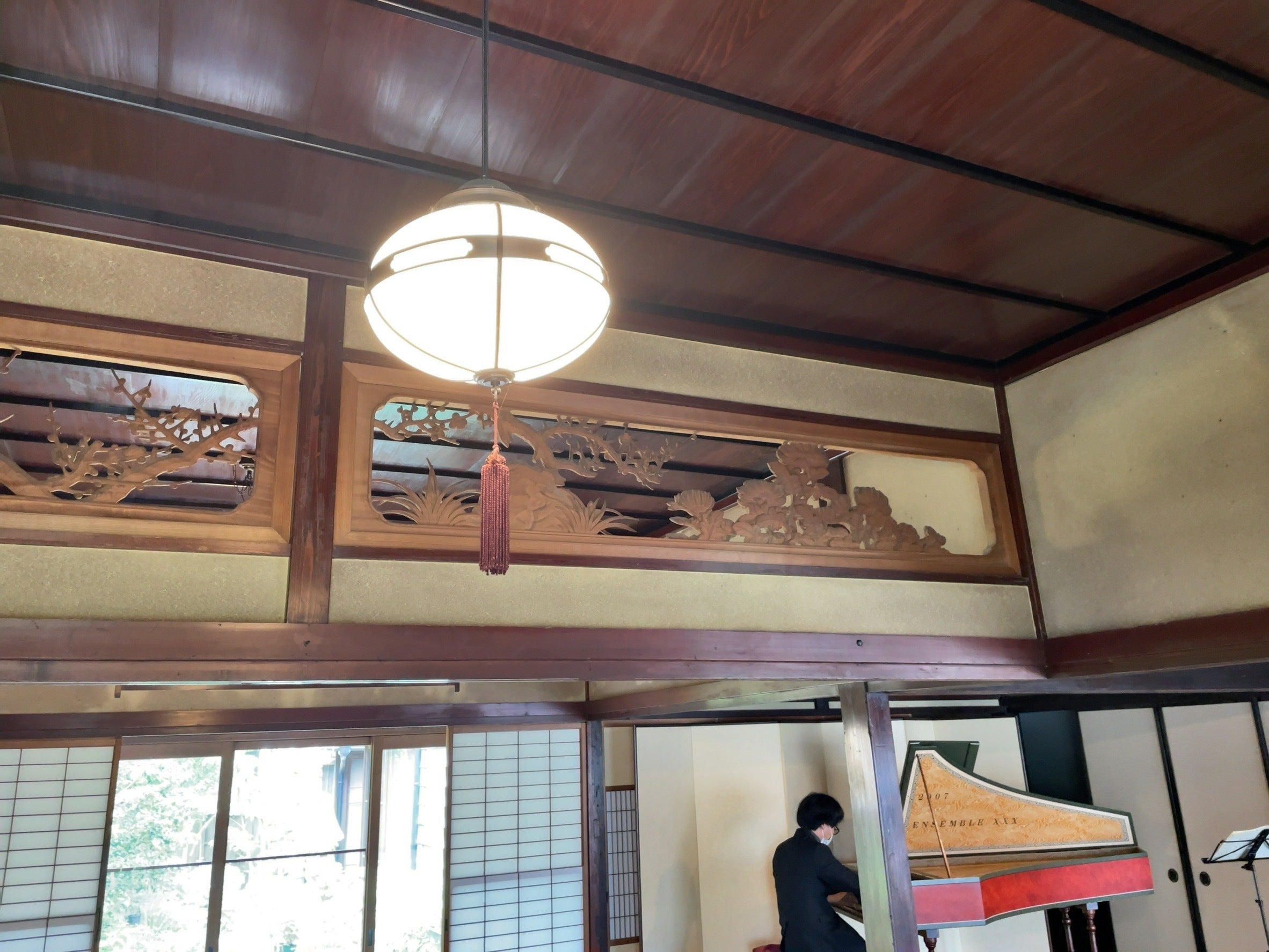 今回、演奏会場となった丸谷家の座敷の天井は、厚さ5ミリ一枚板が張ってあリマス。