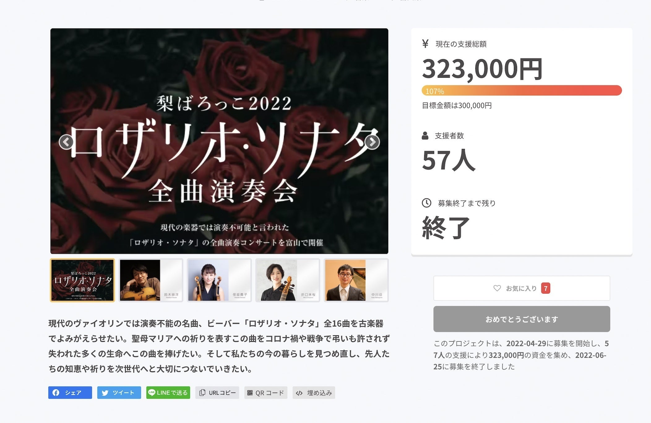 ご支援してくださったかた、本当にありがとうございました。
