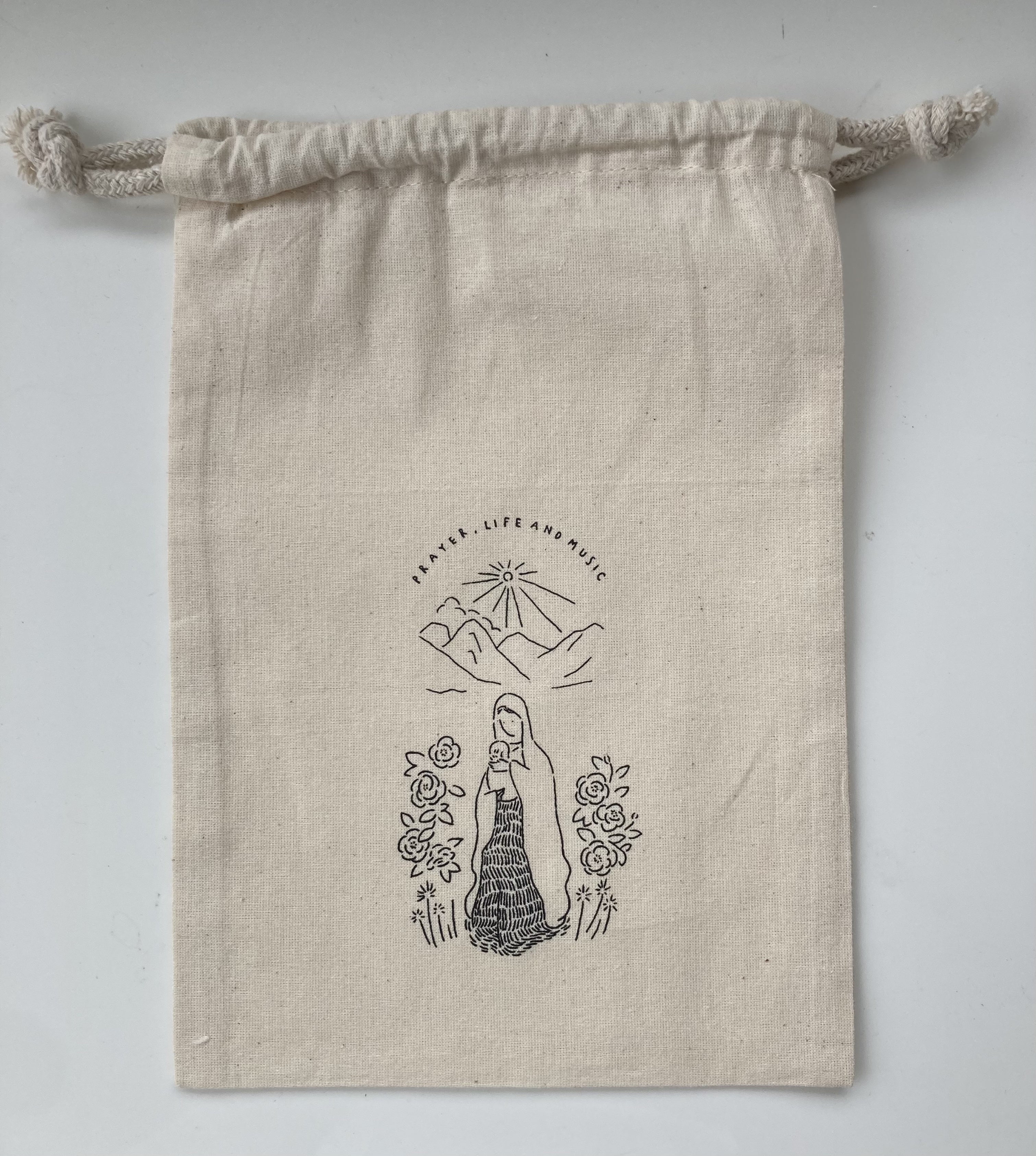 ◉シルクスクリーンのイラスト入り リネン巾着