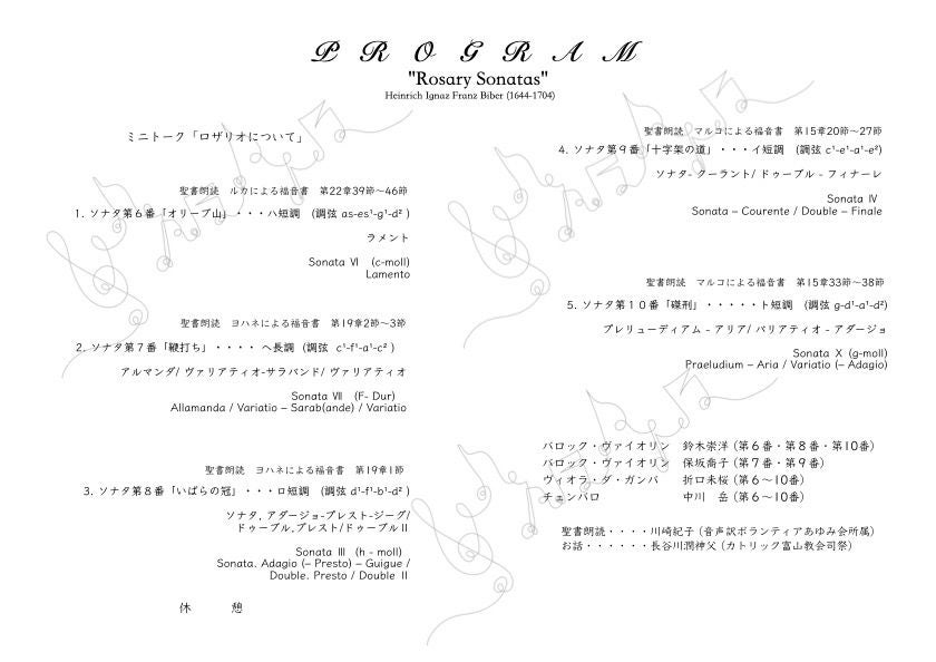 今回演奏される5つのソナタはロザリオの祈りの「苦しみの玄義」の部分。