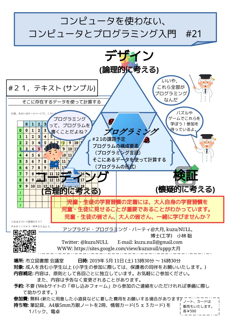 コンピュータを使わない、コンピュータとプログラミング入門 #21 を開催します。