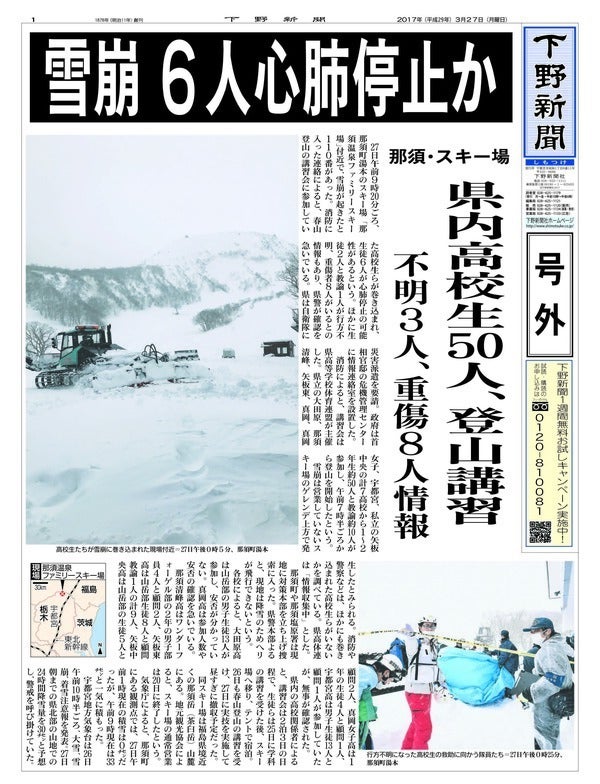 僕も雪の中に全身がおよそ2時間埋まっていましたが、幸運にも他校の先生に救出され、一命をとりとめました。