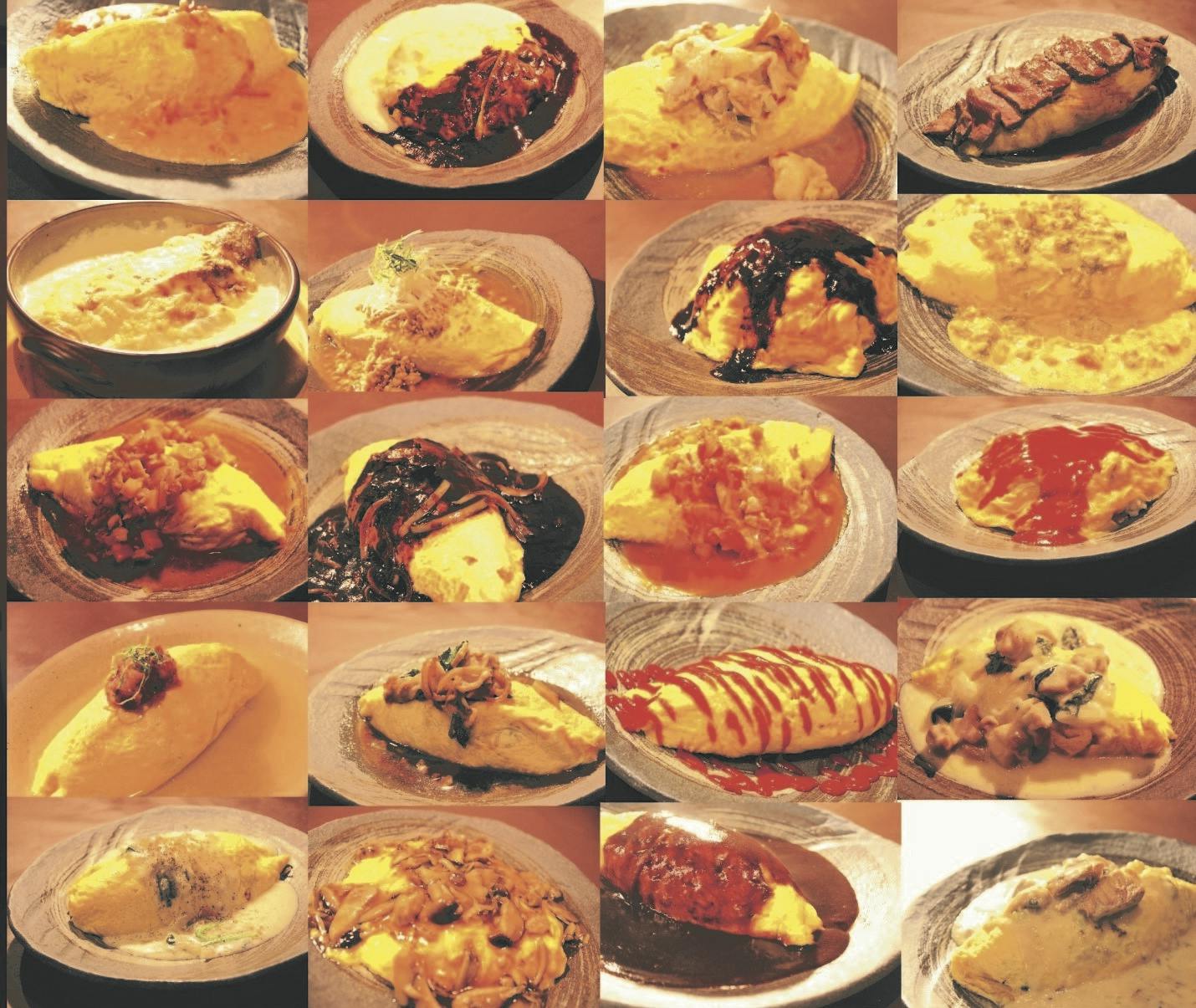 オムライスはグランドメニューに21種類オーソドックスなものから創作したオリジナルのものまで多種多様にご用意!!お酒類も居酒屋などではほとんど取り扱ってないものが多数常備している、オムライス屋であり、ダイニングバーの要素も兼ね備えたお店です。