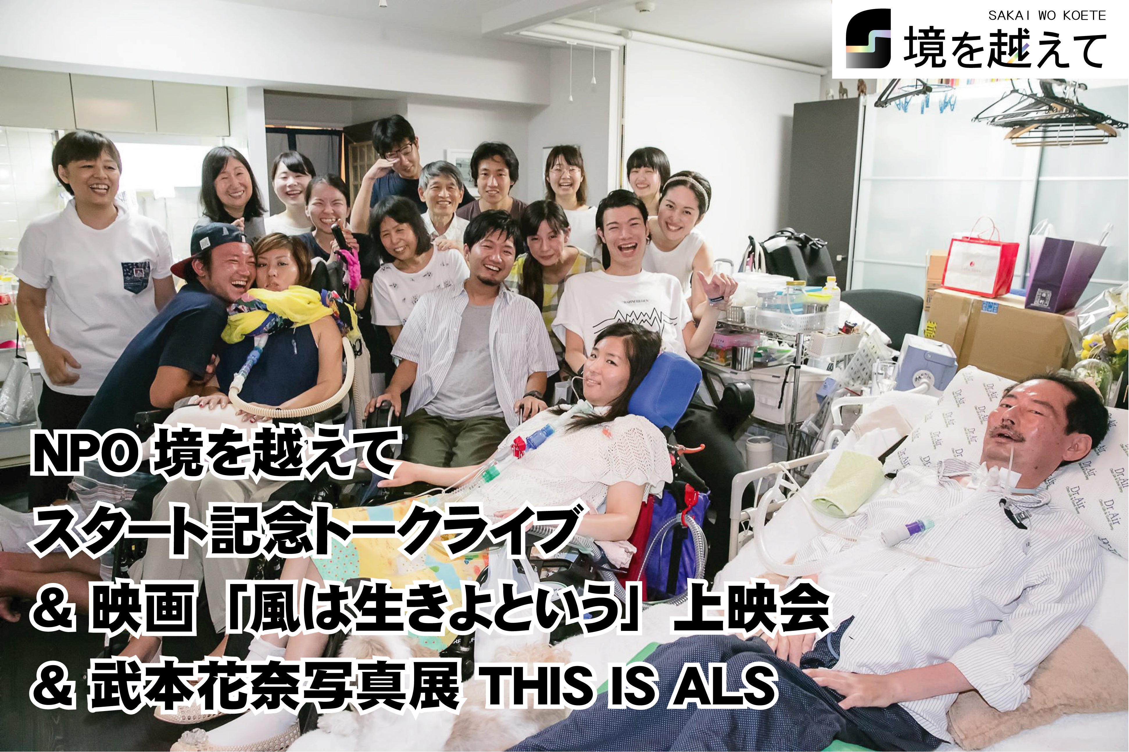 特定非営利活動法人(以下NPO法人)境を越えてのスタートを記念イベントとして、トークライブ「境を越えた瞬間」&映画「風は生きよという」上映会&武本花奈写真展 THIS IS ALS を開催。