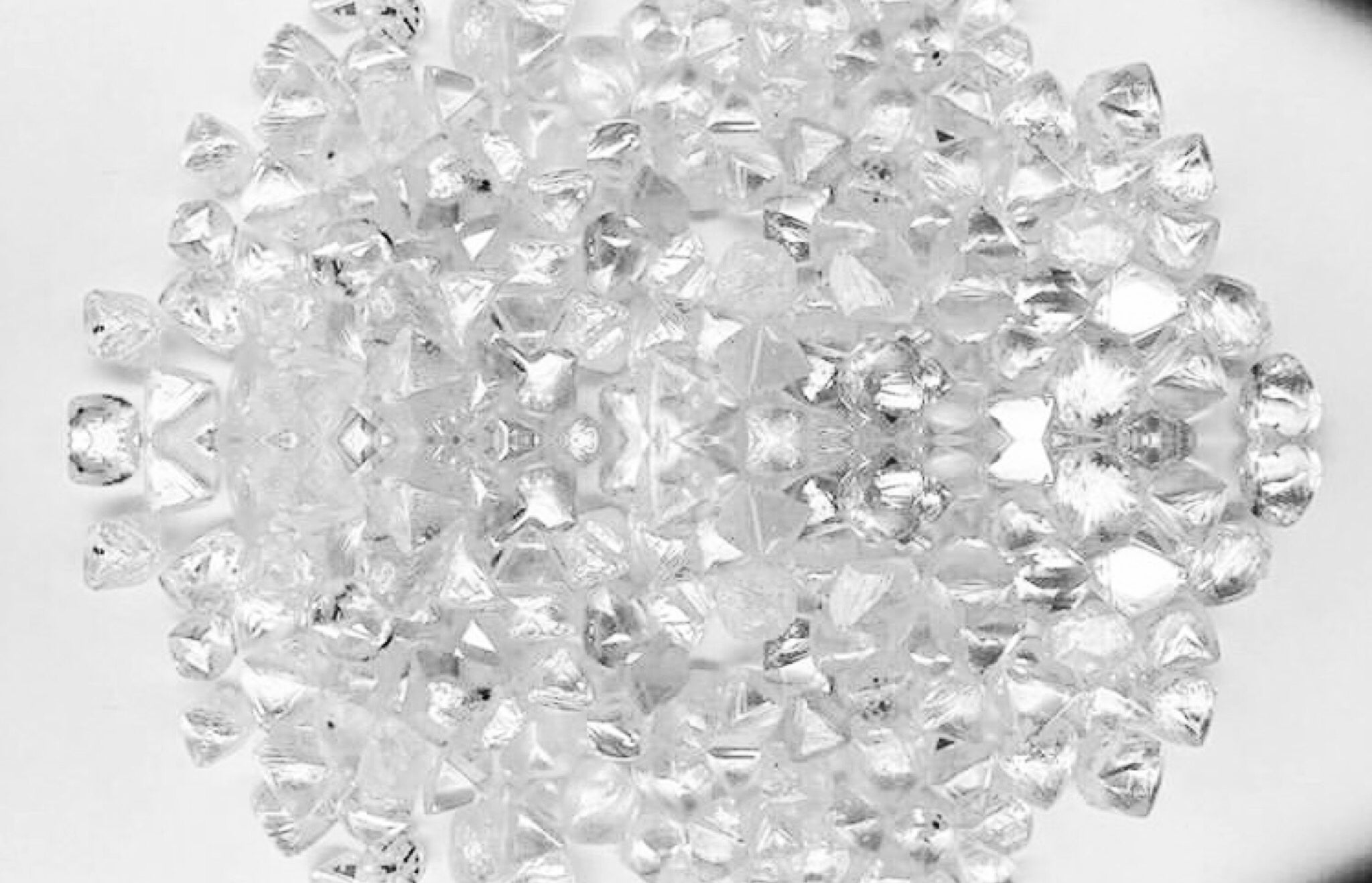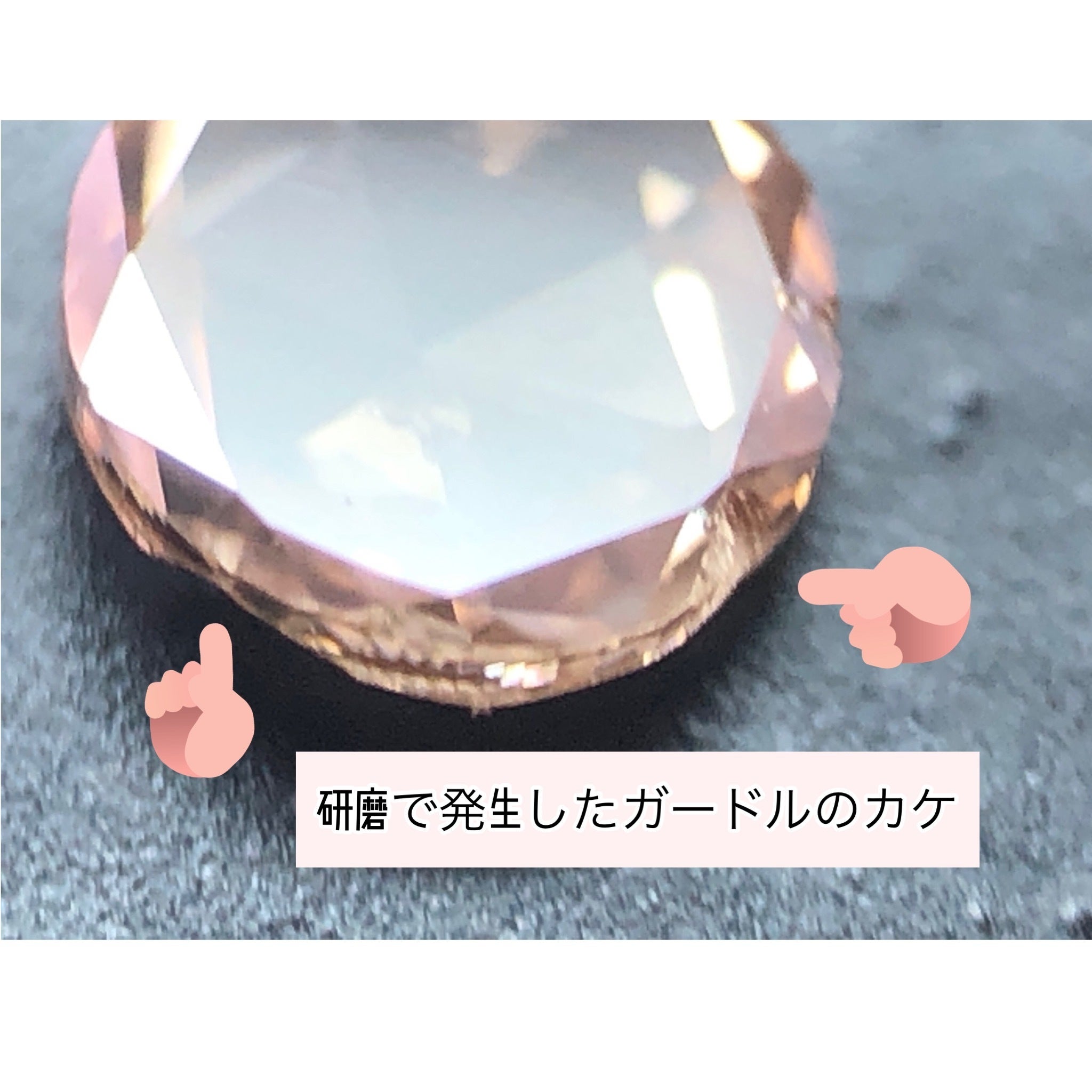 どんなに小さなダイヤモンドでも地中深くから採掘され、原石からカットされ人の手によって磨き上げられてここまでたどり着いてきました。原石を研磨した状態です↓