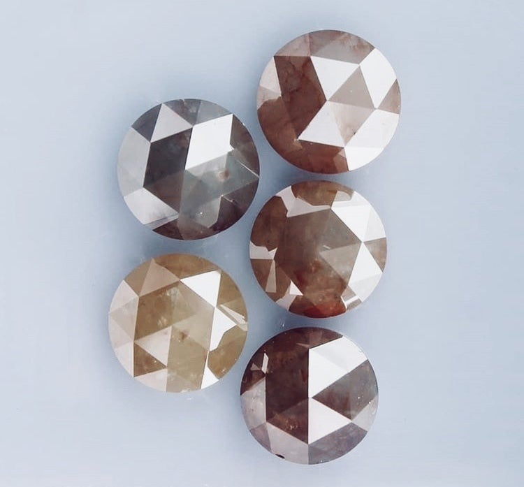色も多様ですアンティーク系ジュエリーがお好きな方向けの暗いトーンのローズカットも非常に人気が高まっております。今後、リターンでも展開するつもりです。白く輝くラウンドブリリアントカットとはまた違う魅力があります。この手のダイヤモンドはメンズ向けにも好まれます。