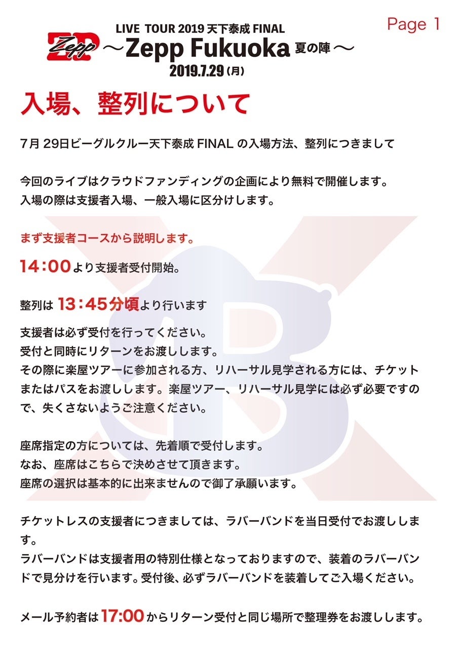 7月29日の当日の入場等についての説明を致します。
