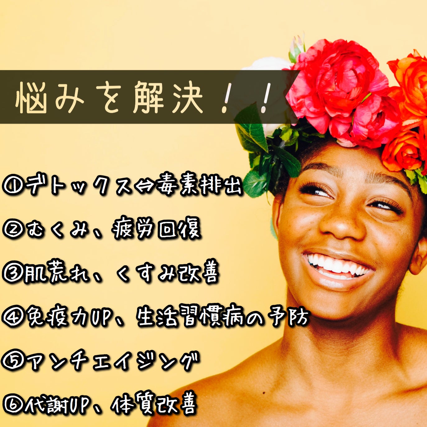 また48時間後、肌、髪等の再生を始めるため、内蔵機能の回復や免疫力の向上が期待できます。