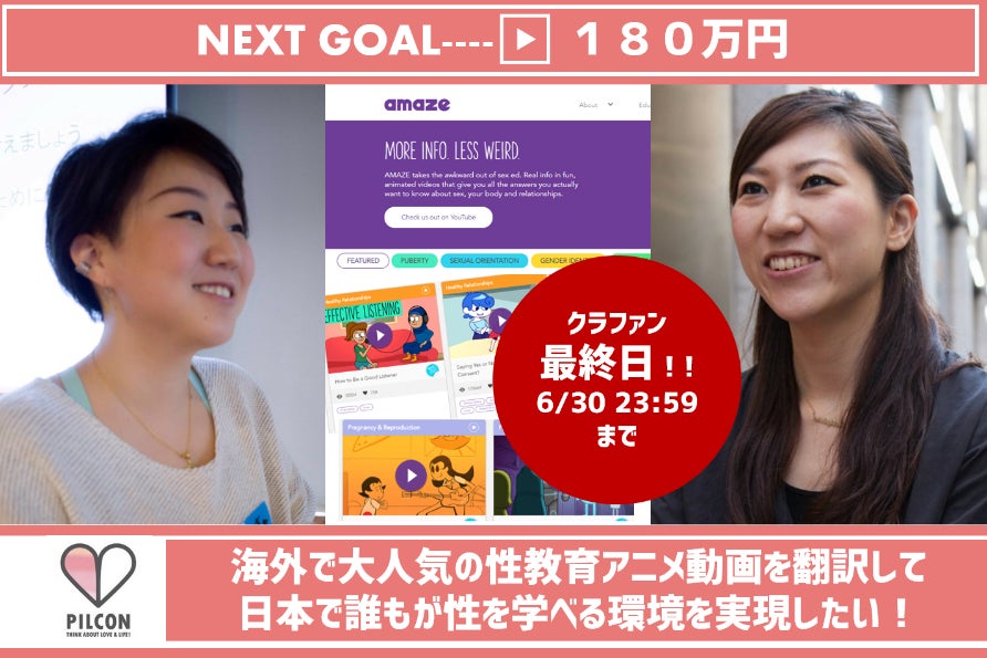 子どもたち・若者たちはもちろん、性教育に関わる保護者、教育関係者、医療関係者も性教育の伝え方をじっくり学べる教材として活用します。AMAZEの動画の翻訳により、日本語を話す人がどこでも、だれでも、性教育について幅広く、最先端の知識を楽しく学べることが実現します。動画をアップ後、SNS等でもPRを行い、1年間で動画の総再生数100万回を目指します。