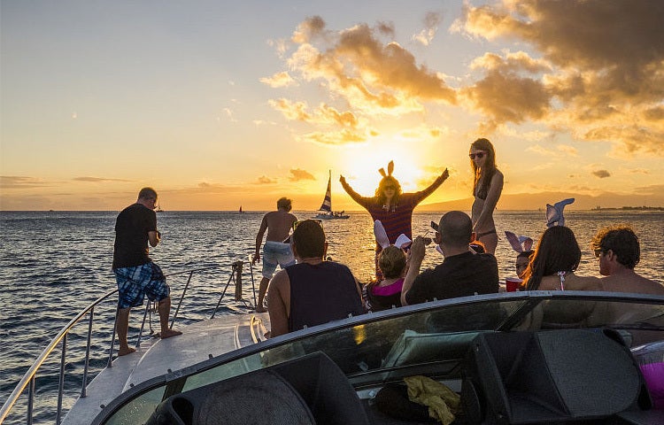 船上パーティーのとき、料理もワインも手軽に持ち出せます。仲間とのとっておきのパーティに最適です。