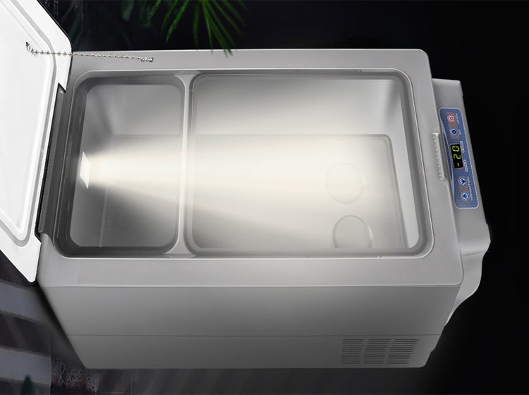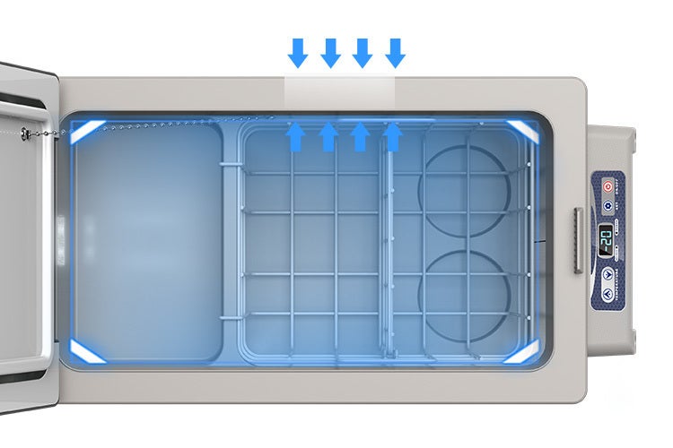冷却能力に優れたコンプレッサーを採用しております。今まで主に使われているペルチェ式より、コンプレッサー式は冷却ガスを圧縮して循環させ、夏場の暑さでも負けないぐらいの冷却力が特徴です。消費電力が少なく、熱交換の効率が良く省エネでもあります。