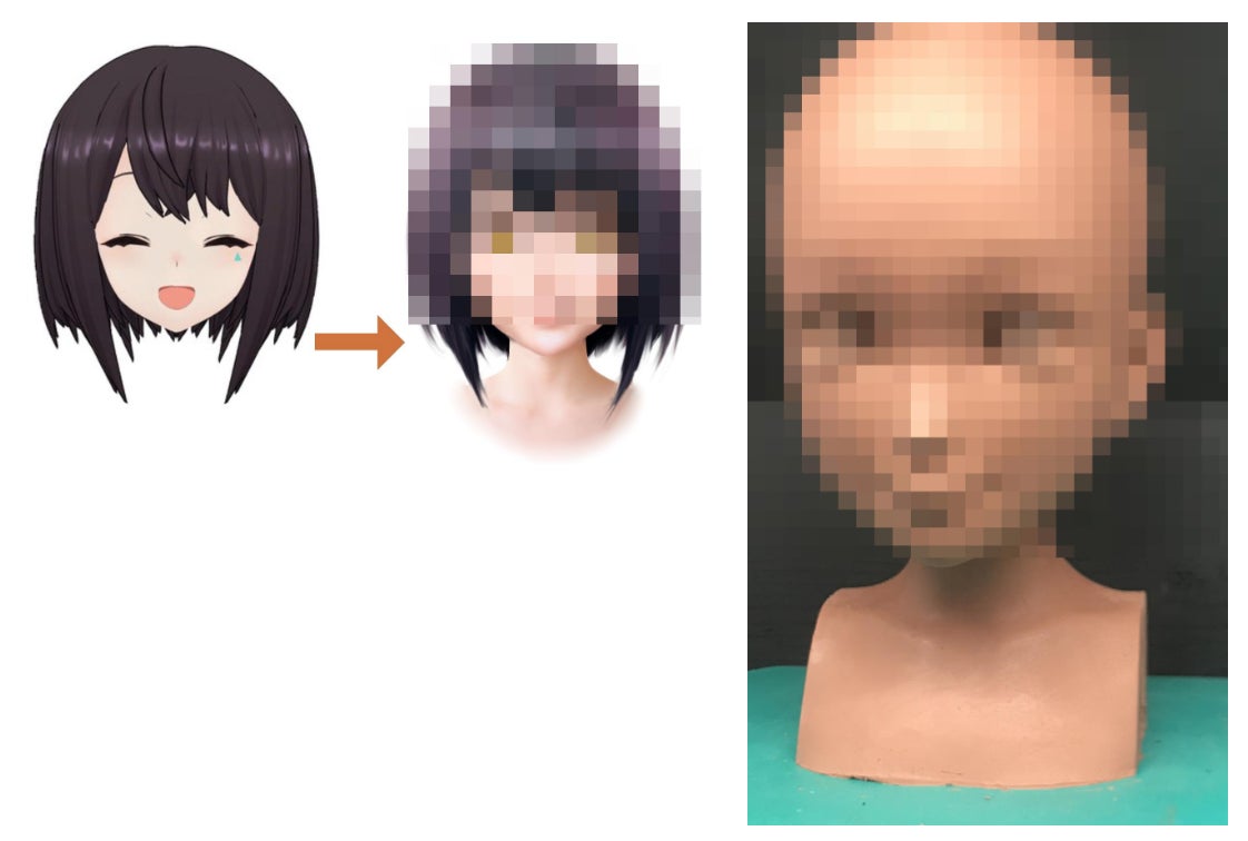 1枚目の画像が斗和キセキの顔面を生首制作用に改めて描き起こしたもの、2枚目の写真がそれを元にして制作している生首の「原型」になります。