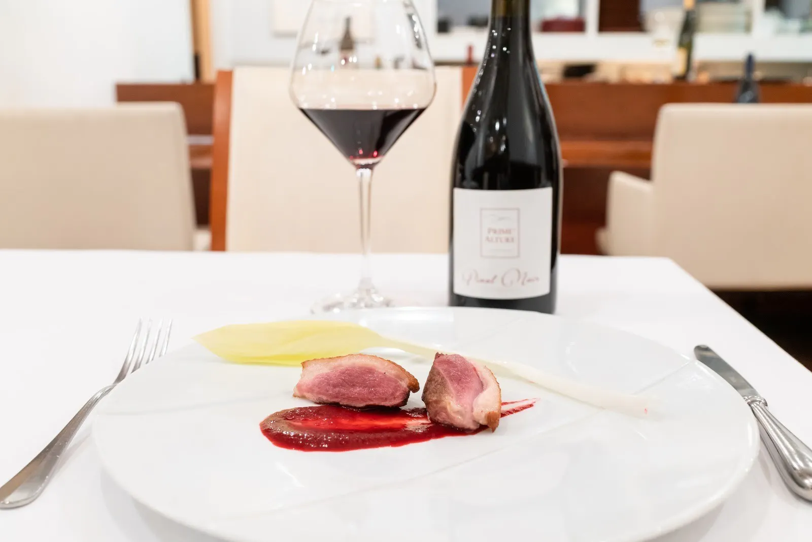 「このピノノワールは醸造家との独占契約を結んでいるため、アジア圏ではここアフェットでしか飲むことが出来ません。このワインは世界的に品質が認められており、北イタリアの星付きレストランにしか卸していないものです。」