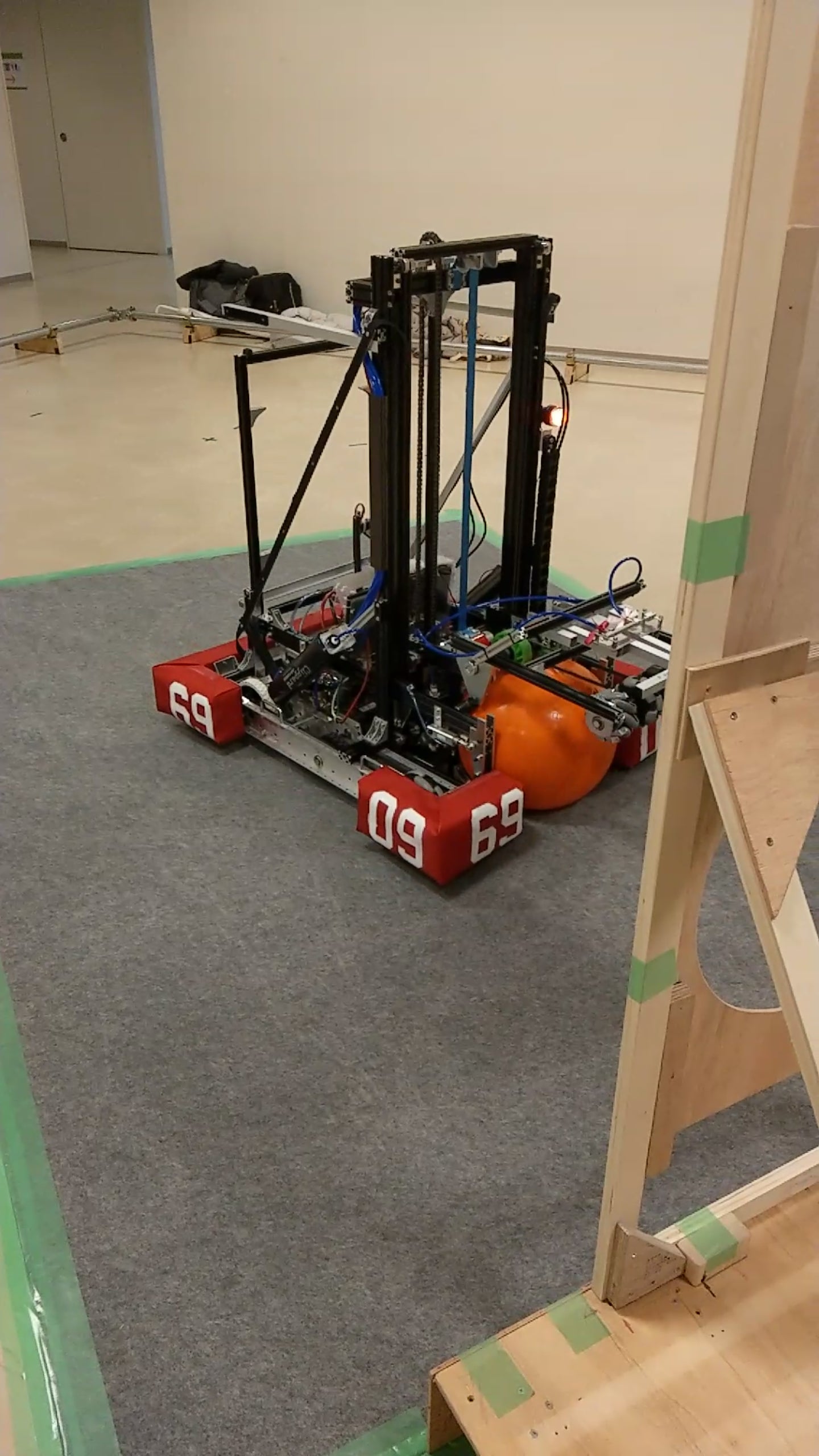 ↑今年の私達のロボットです。試合で使うオレンジのボールを持っています。