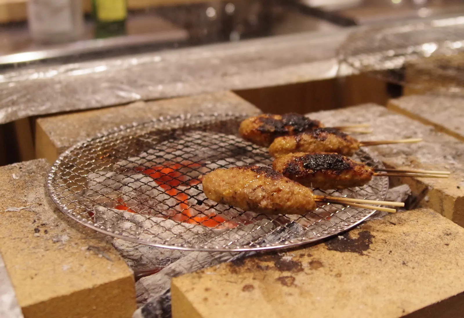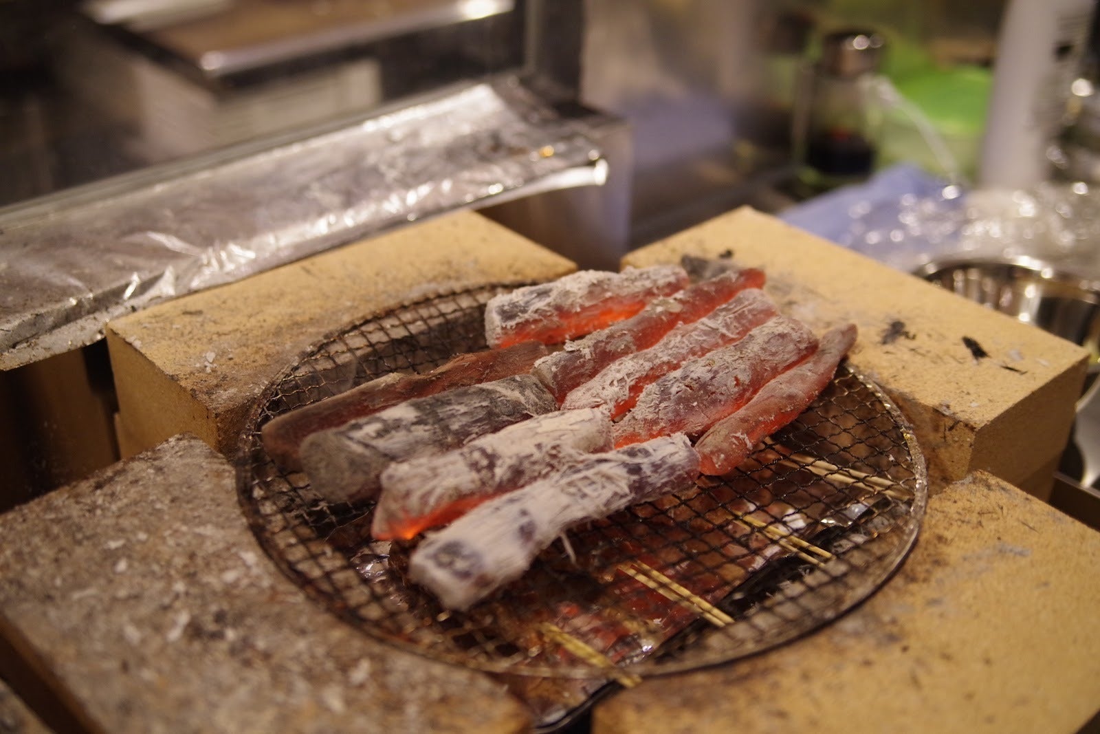 鶏一匹、骨以外を丸ごとミンチした丸引きのつくねは、とにかく柔らかいので、網で焼くと網目から肉が落ちてしまうそう。