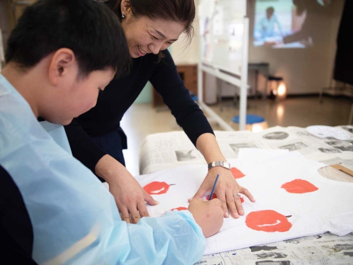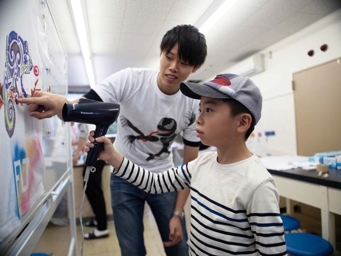 子どもたちには色が変わる不思議なインクを使い、Tシャツ作りを体験してもらいます。