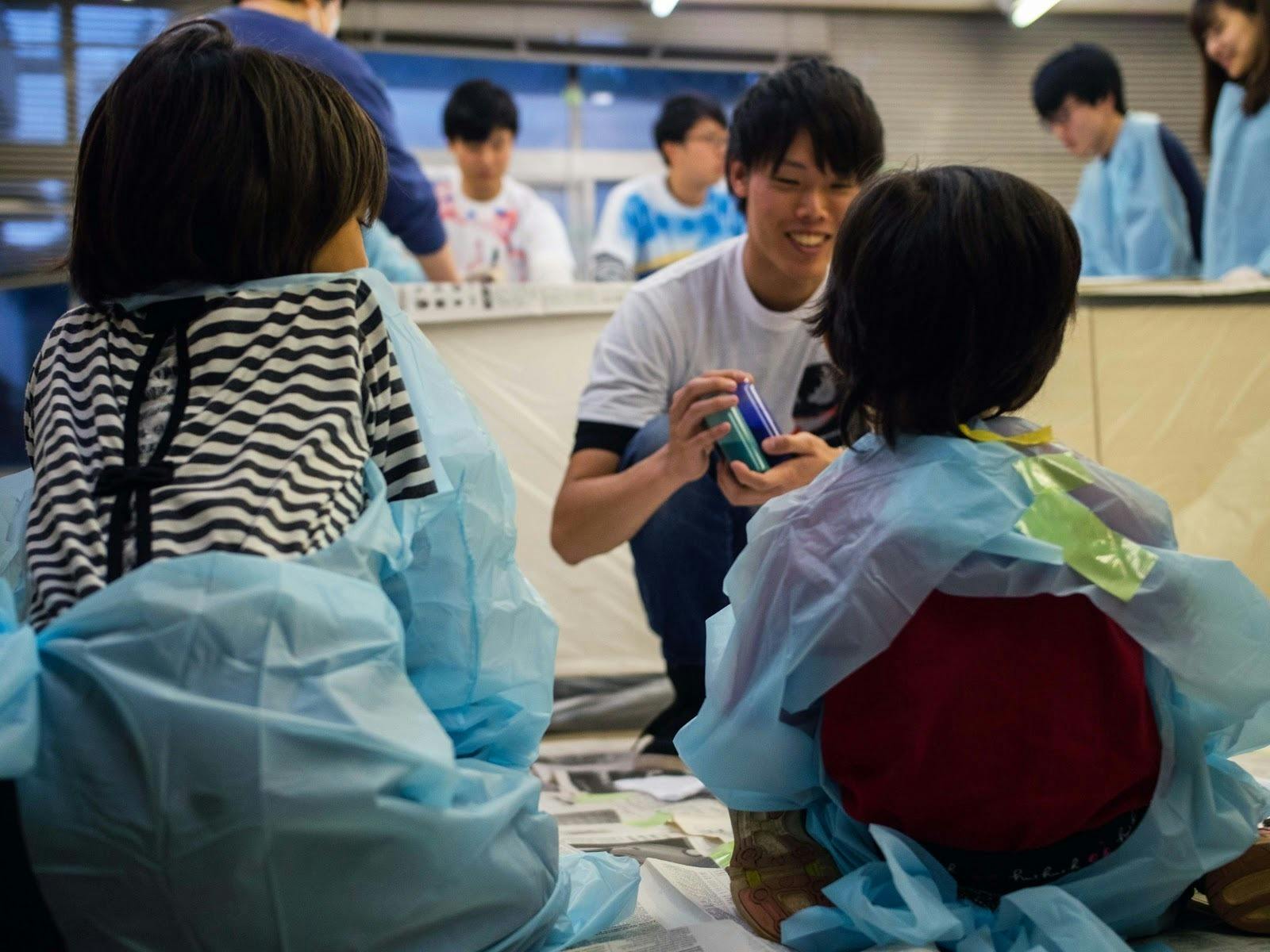 2. こどもたち自身でそのTシャツに色付けをしていく