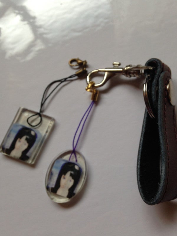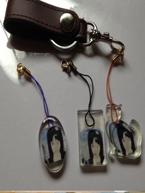 キーホルダーです。四角と楕円と猫の形のものもあります。(二つ選んでください。)