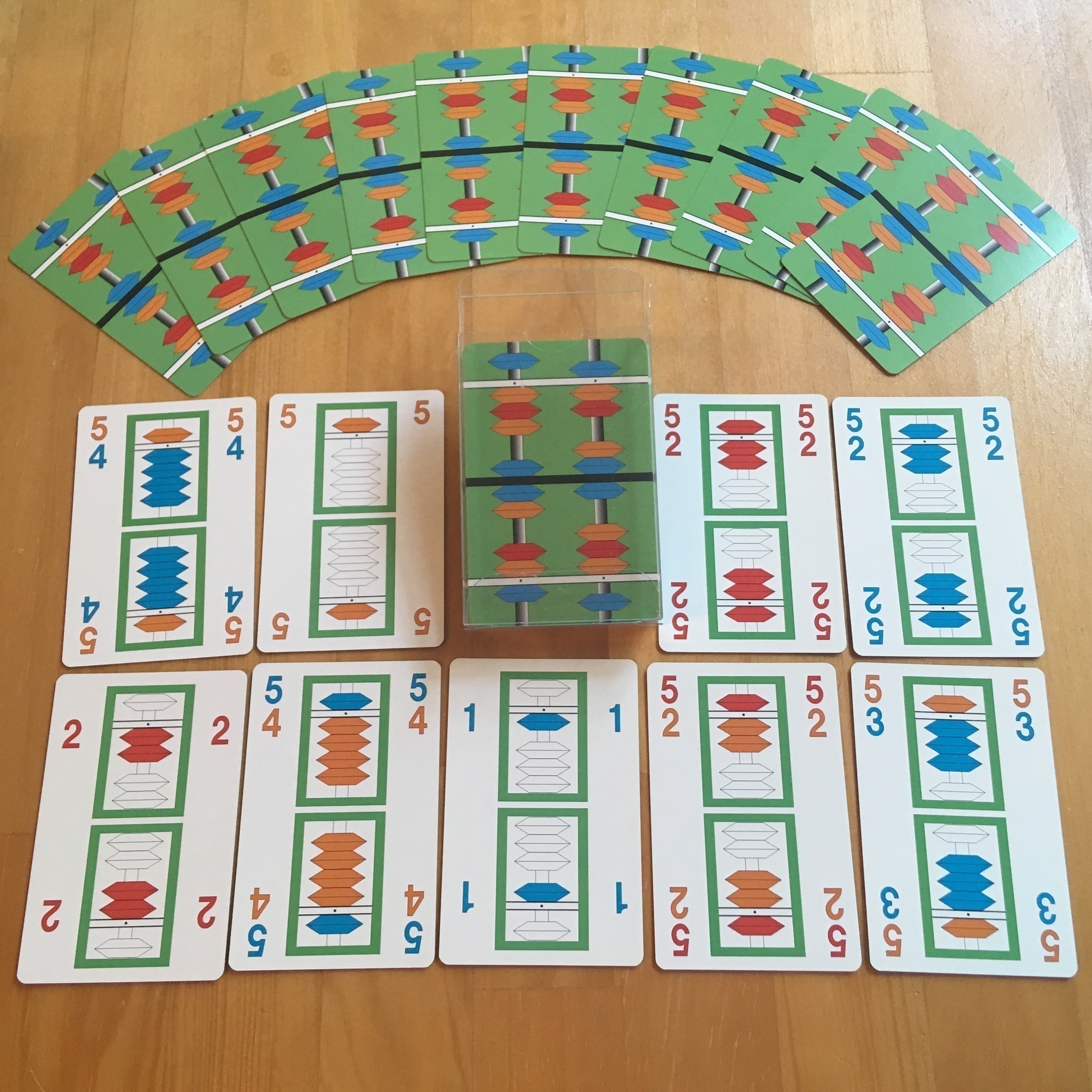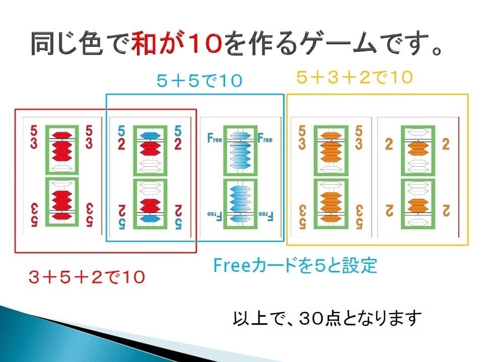 和が10になるように、そろばんのイラストが描かれたカードを出し合う