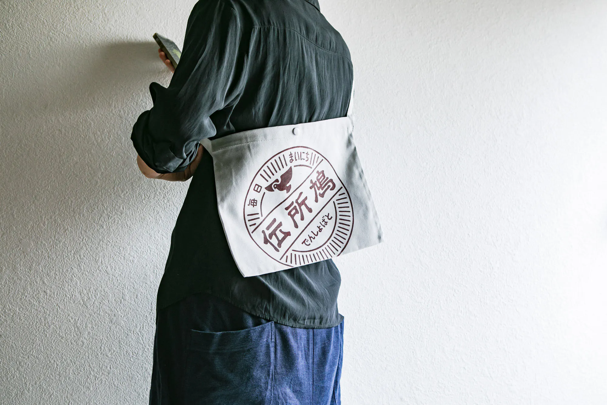 そして、最後にご紹介するのはサコッシュ。ちょっとしたお出かけや買い物にとても使いやすく、伝所鳩の1階が「じてんしゃ雑貨店」ということもあり、自転車に乗る人にも便利なアイテムということで制作しました。