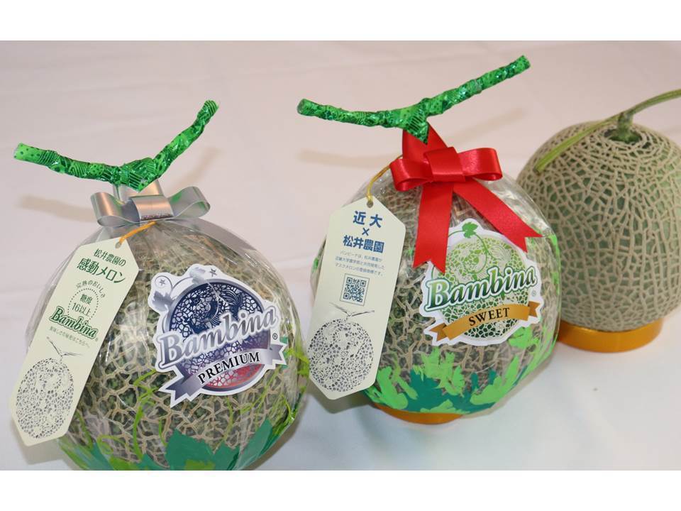 2019年6月21日(金)、スイーツ級とプレミアム級の「バンビーナ」メロンを近畿大学のホームページで公開しました。タッグや包装紙のメロンのデザインは、奈良県をイメージする鹿、金魚、鳥、花などを組み合わせた模様でできています。