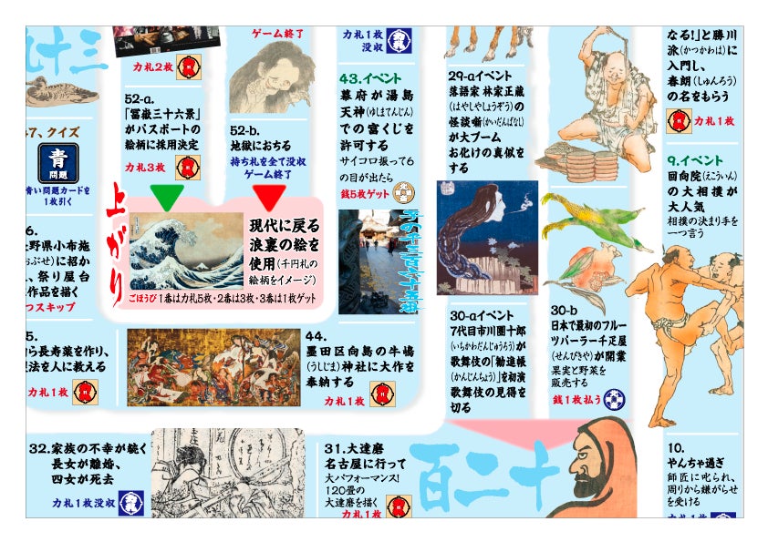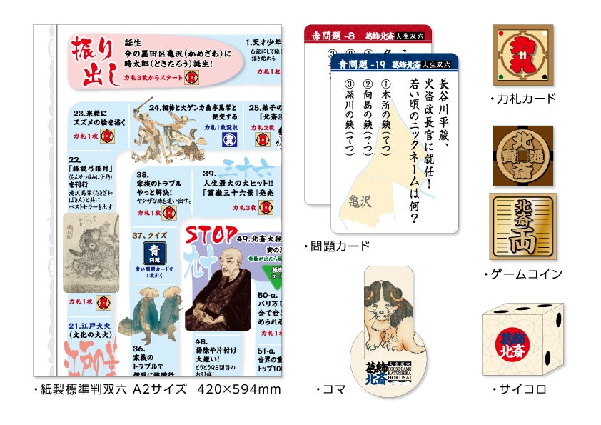 その第1弾プロジェクトとして、昨年東京都墨田区のすみだ北斎美術館で開催し大好評を博したゲーム大会のメインアイテム「北斎人生双六」をバージョンアップして、北斎ゆかりの地等にお届けしたいと考えています。