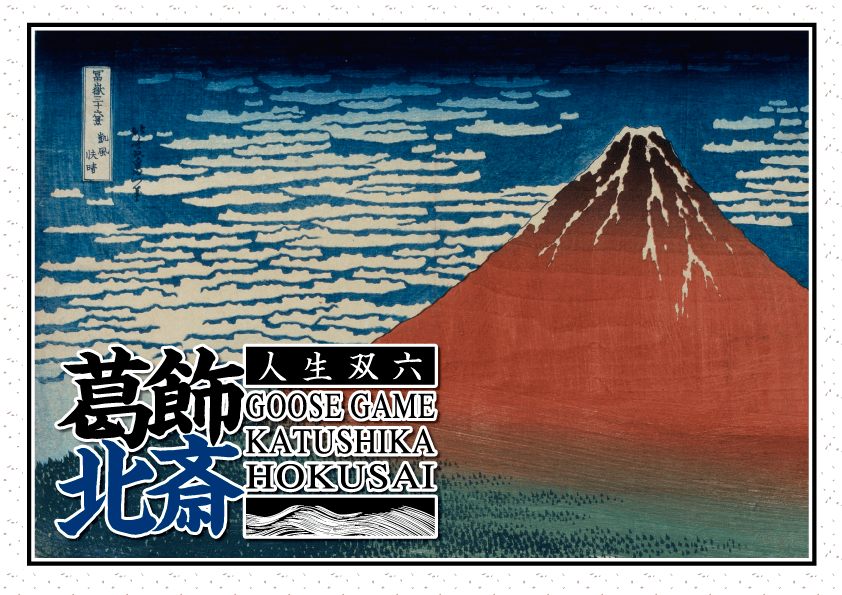 すみだ北斎美術館の所蔵作品を30点以上使用し、見た目にも美しいデザインになっています。 らせん状にコマの進めるスタイルは、ヨーロッパの「鵞鳥のゲーム(goose game)」に倣っています。