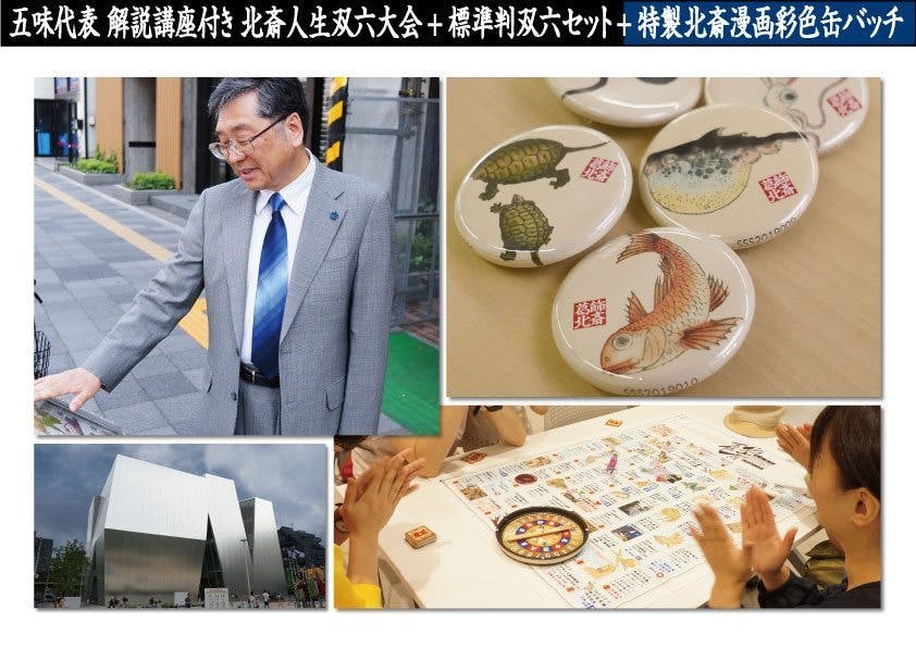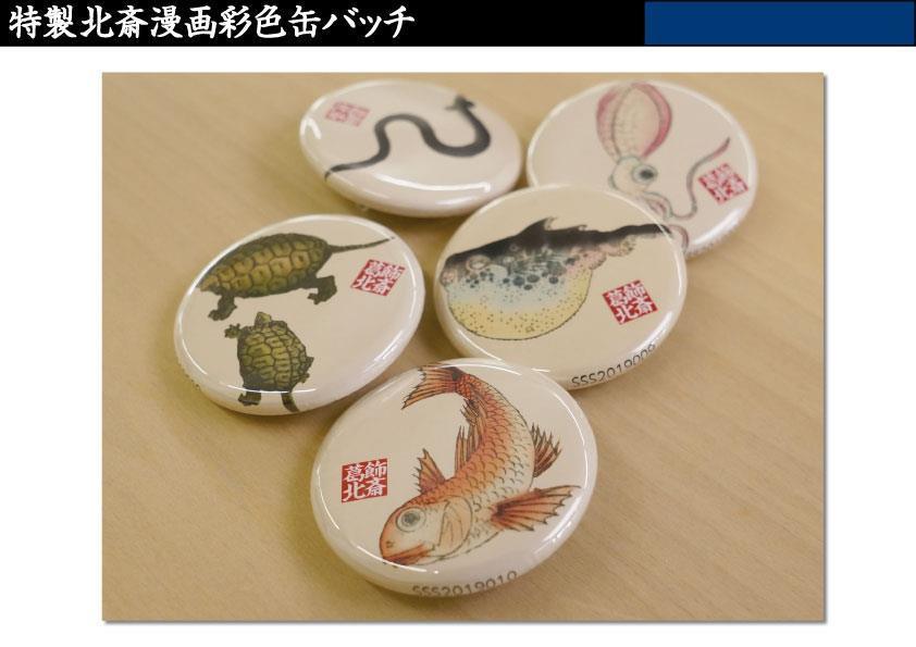 現在制作中の「北斎人生双六」支援のリターンとして、オリジナル特栽缶バッジ付きのメニューを用意しております。この機会だけのご案内ですので是非!
